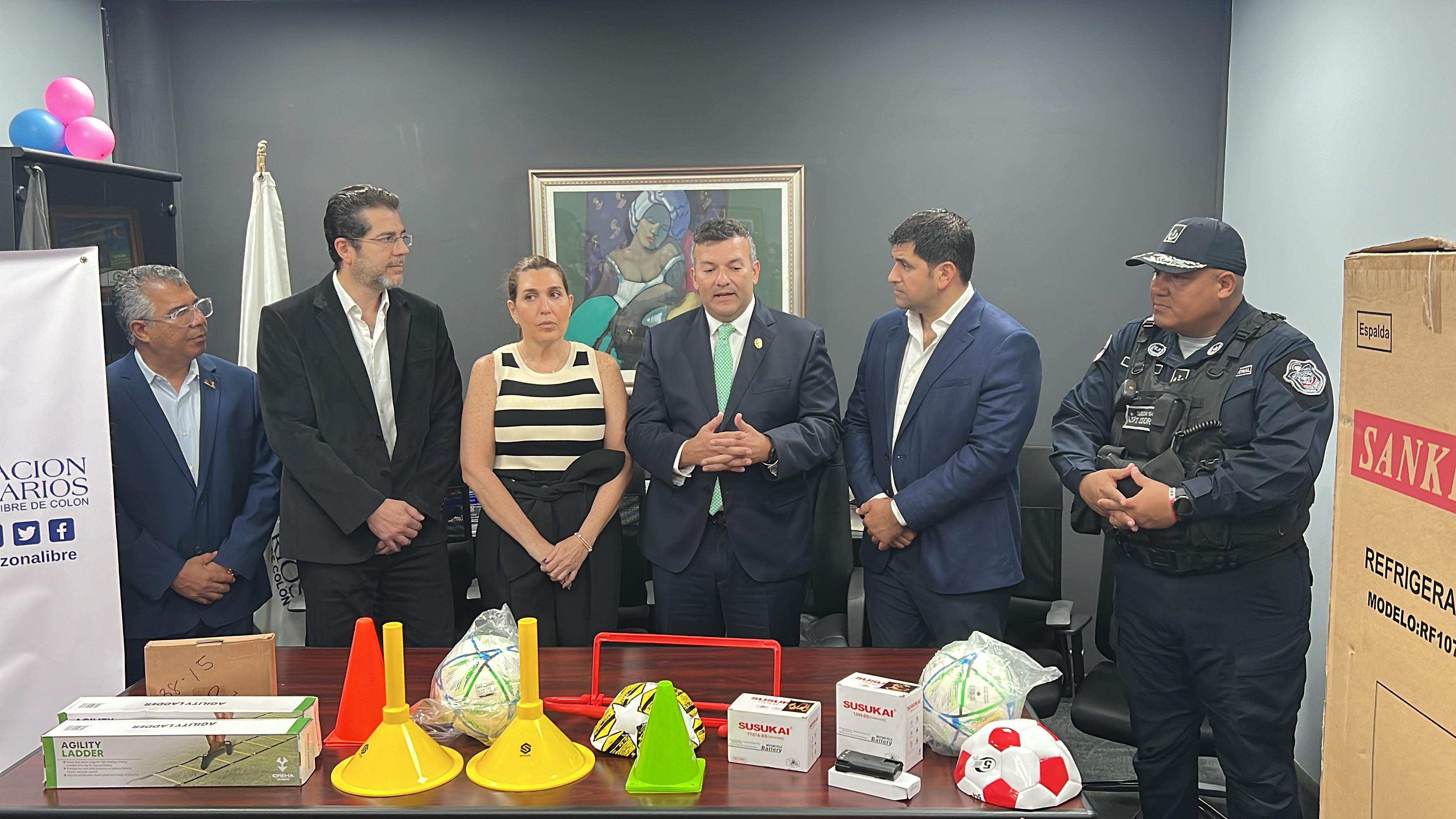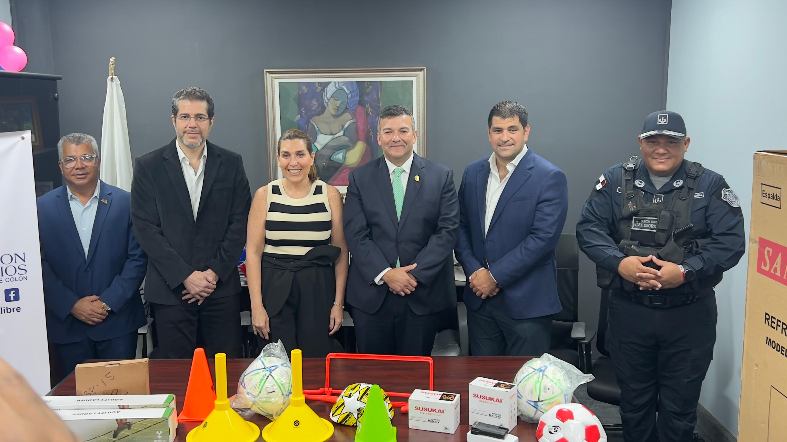 Como parte de las alianzas estratégicas, el Director General de la Policía Nacional, Jaime Fernández recibió una dotación de equipos variados e implementos deportivos por parte de la Asociación de Usuarios de la Zona Libre de Colón; gremio que forma parte de Comercios Vigilantes.
