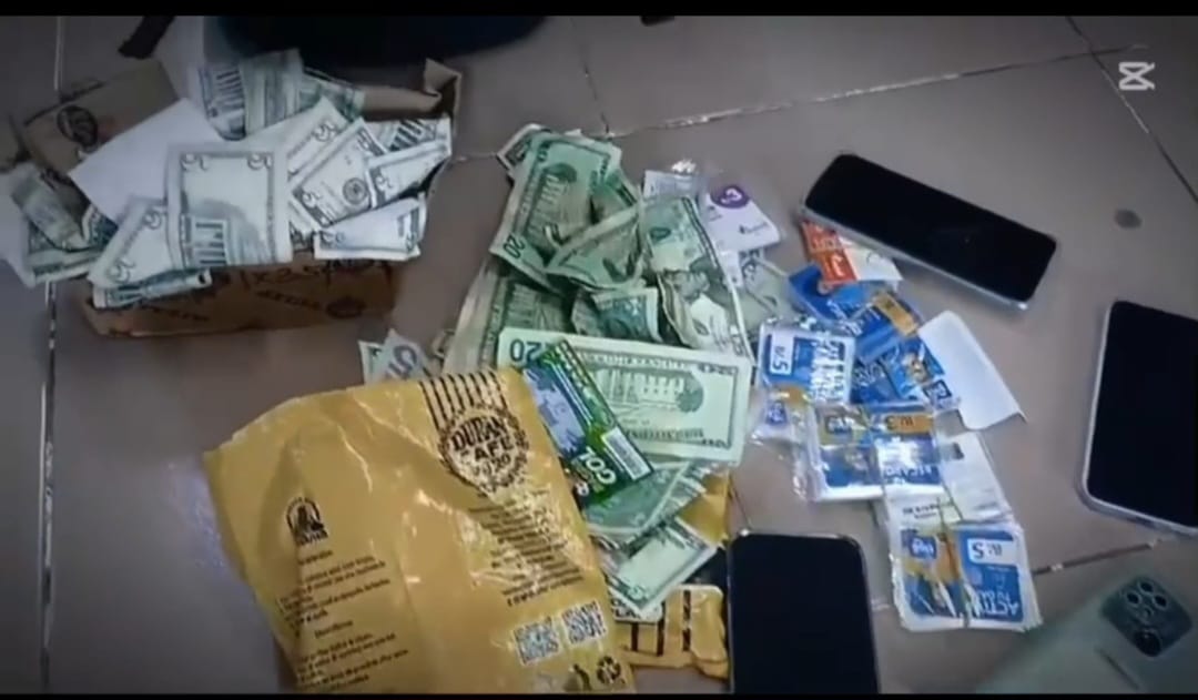 Durante la acción policial se recuperó gran cantidad de dinero en efectivo, tarjetas de celulares, teléfonos celulares, billetes de lotería y las dos armas de fuego con proveedores y municiones.
