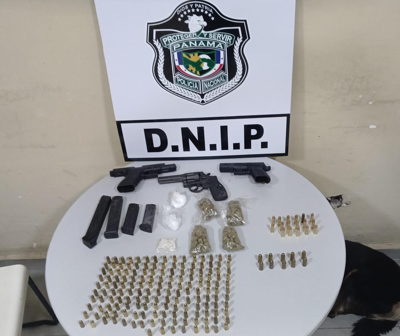 La Policía Nacional mediante acciones de inteligencia en el corregimiento de Río Abajo, da con el hallazgo de tres armas de fuego, más de 300 municiones de diferentes calibre y presunta droga.