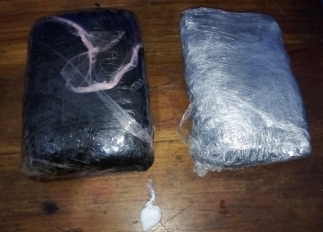 Se trata de dos paquetes forrados con cinta adhesiva de color gris que en su interior contienen materia vegetal que se presume sea la droga marihuana.