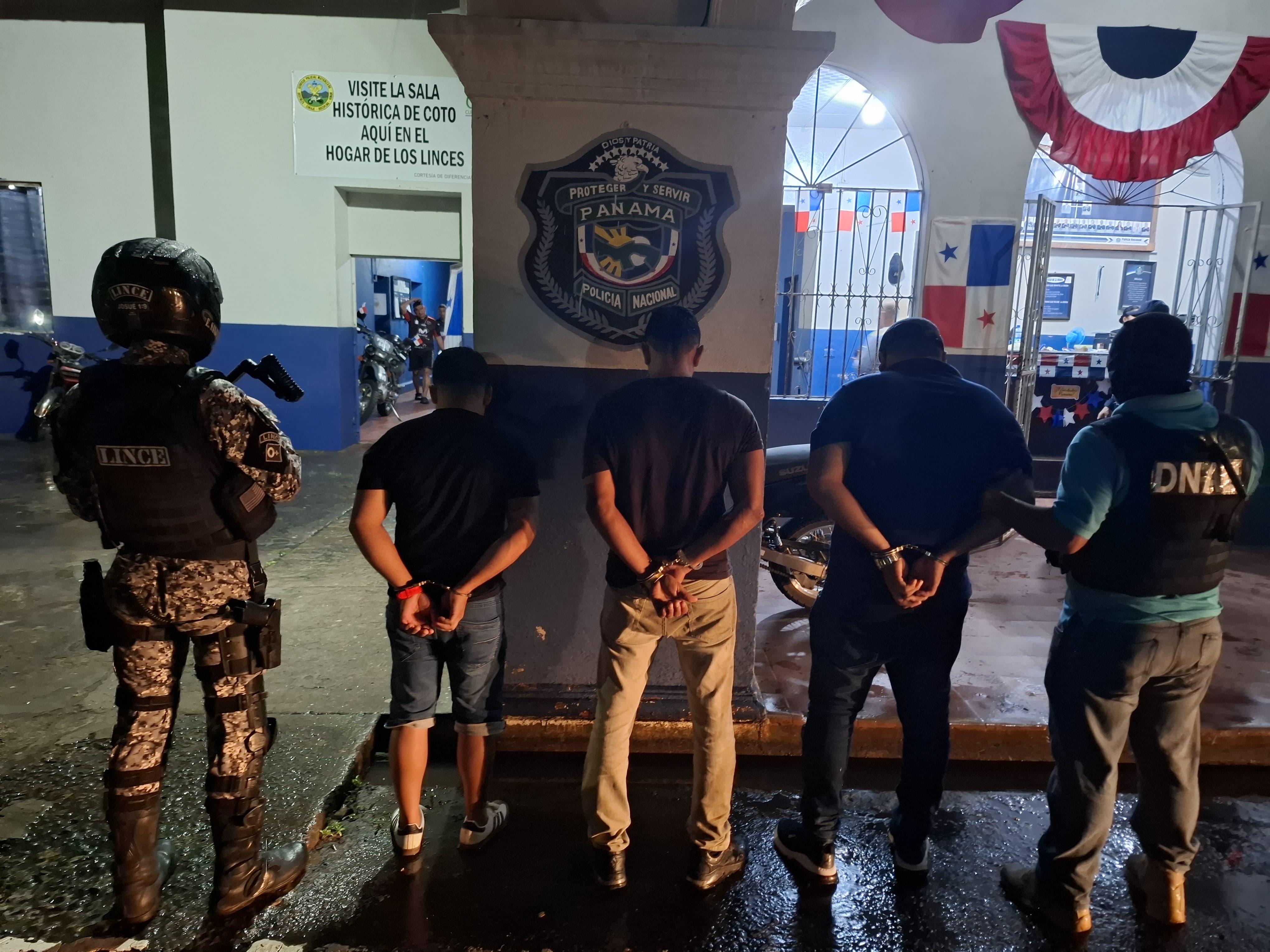 Unidades de la Dirección Nacional Antidrogas de la Policía Nacional aprehenden a tres ciudadanos en posesión de presuntas sustancias ilícitas dentro de un vehículo, en la provincia de Chiriquí.