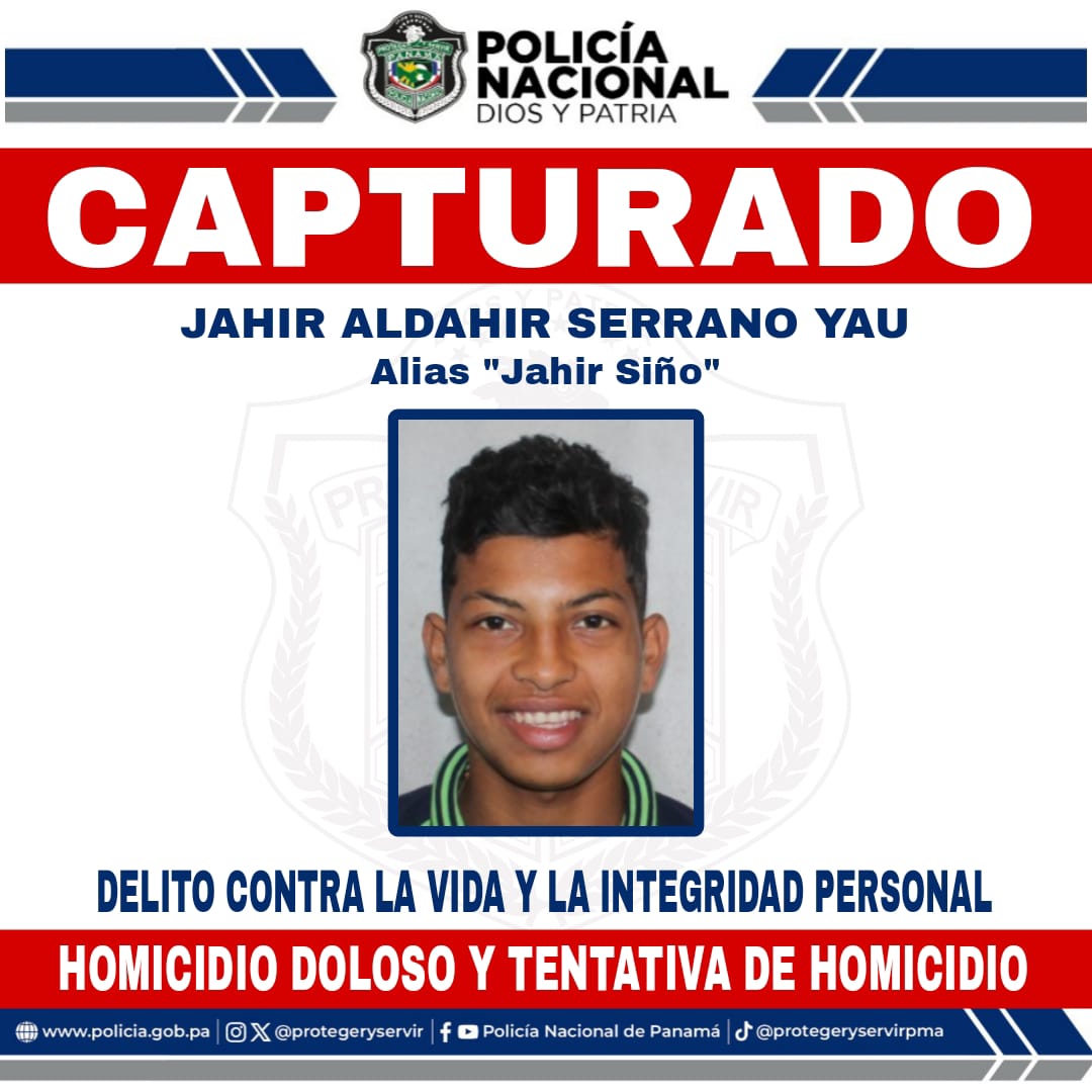 La Policía Nacional a través de la Dirección Nacional de Investigación Judicial (DNIJ) aprehende en Betania a Jahir Aldhair Serrano Yau alias "Jahir Siño", por el delito Contra la Vida y la Integridad Personal en su modalidad de Homicidio Doloso Agravado y Tentativa de Homicidio.