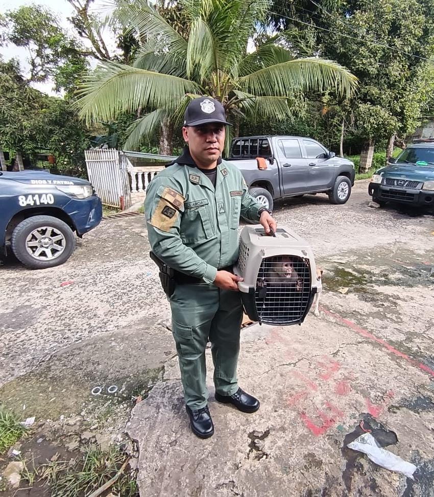 Unidades de la Policía Nacional rescató un Mono Capuchino en cautiverio, tras una diligencia de allanamiento realizada en conjunto con funcionarios de Mi Ambiente.