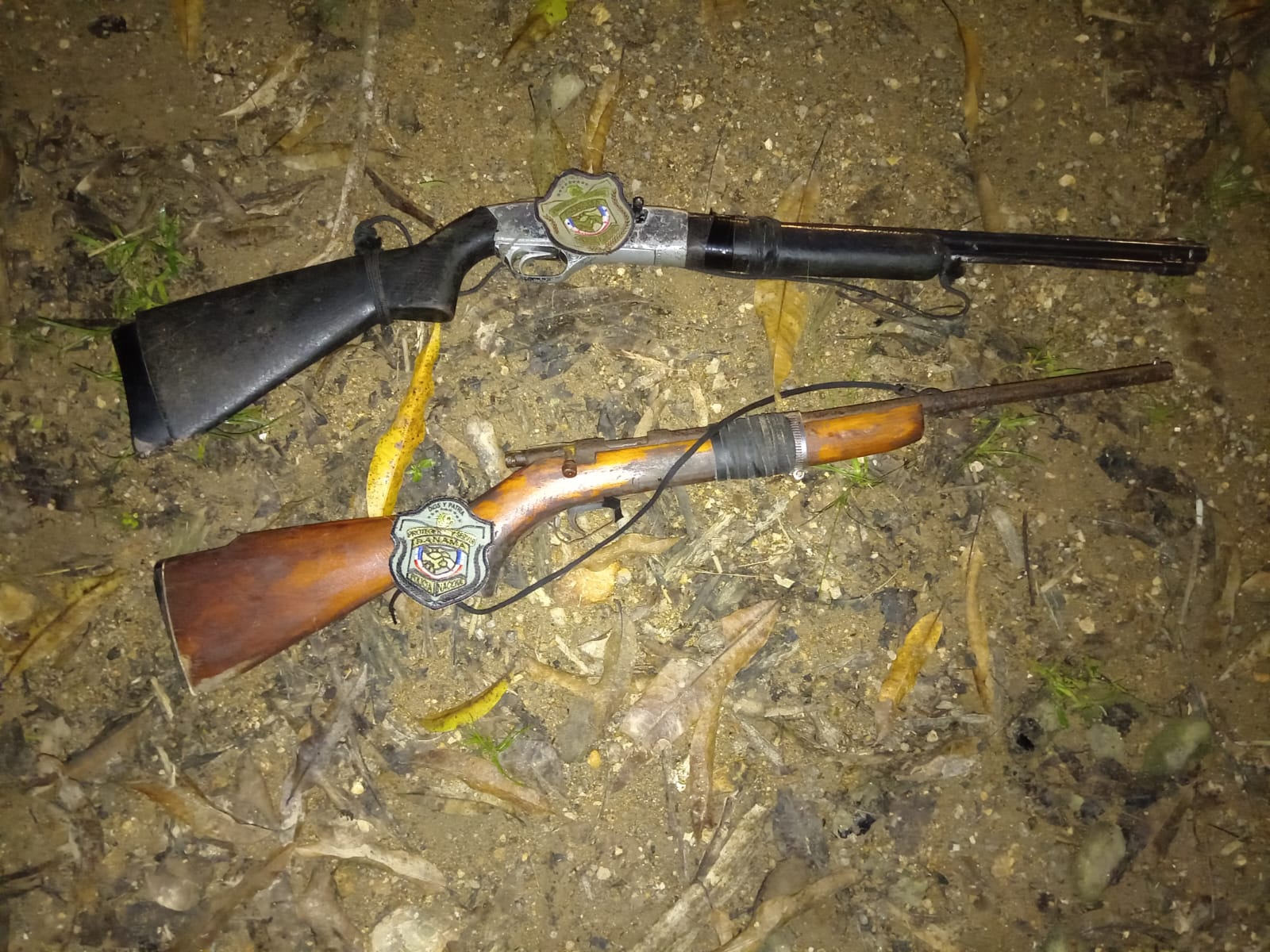 Unidades de la Policía Nacional de ronda en el sector de Concepción La Nueva, del corregimiento de Juan Diaz, ubicaron en “La Vereda Silao”, dos armas de fuego tipo pistola, calibre 9 milímetros además de un proveedor con 15 municiones. En el sector 5 de Samaria, distrito de San Miguelito, unidades policiales dan con la recuperación y la aprensión de un ciudadano mayor de edad, que mantenía en su poder un arma de fuego automática sin permiso. Mediante acciones operativas en el sector de Villa Unida, corregimiento de Chilibre, se da con la aprehensión de dos personas y el decomiso de un arma de fuego tipo revolver y municiones sin detonar. Por otro lado, en Panamá Oeste, mediante patrullaje de control y vigilancia por el sector de Faldares, en una área boscosa y pasadero de posibles cazadores, se observa a dos ciudadanos que al darles la voz de alto para ser verificados, salen en precipitada huida hacia el área boscosa. Al inspeccionar el lugar donde se dieron a la fuga, se logró dar con el hallazgo de dos rifles calibre 22. Se coordinó con las autoridades judiciales en turno para proceder con los trámites correspondientes. Cada arma de fuego que la Policía saca de las calles es una vida que se salva y un hecho delictivo menos. |