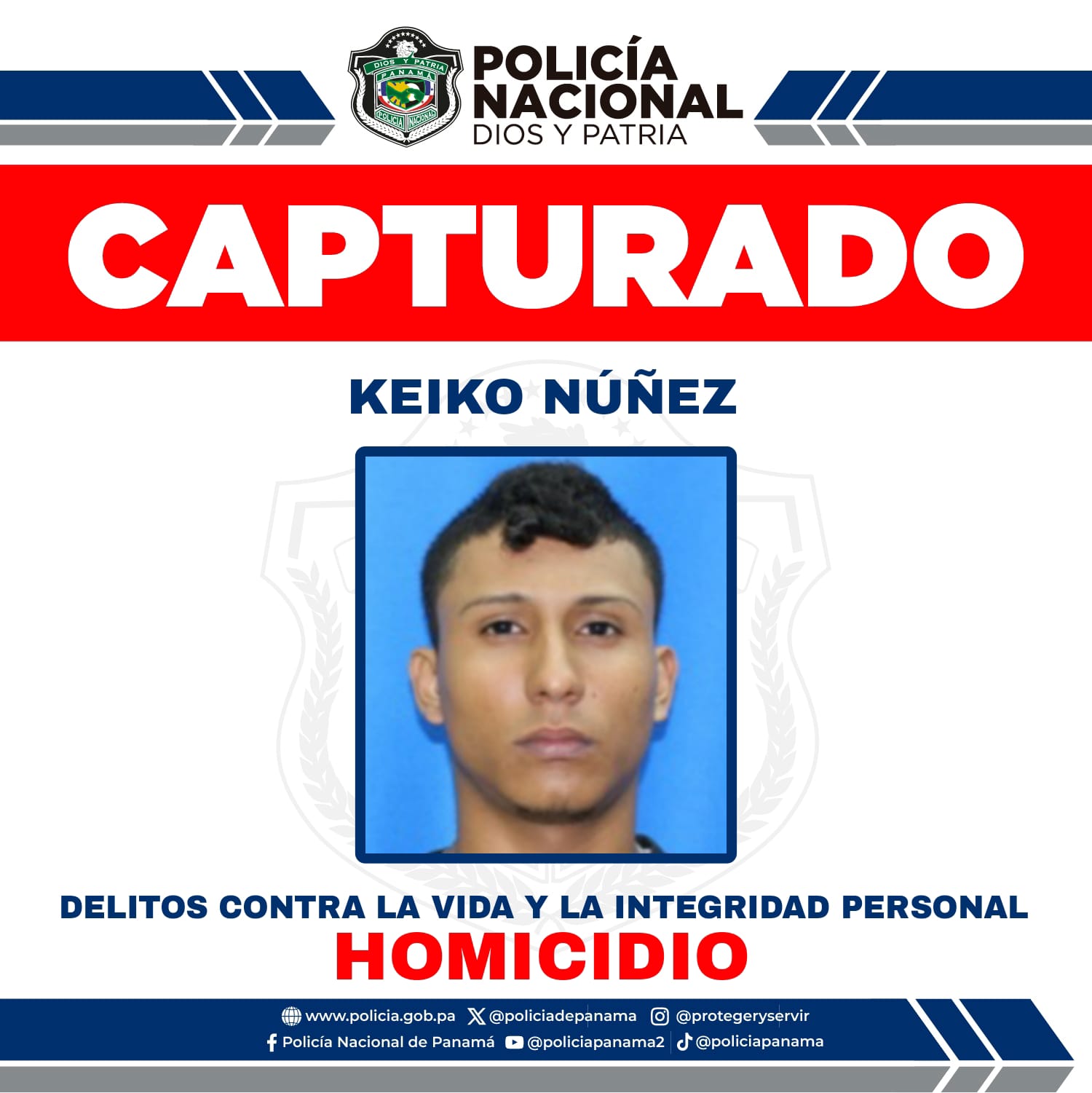 Gracias al intercambio de información policial entre las Oficinas de Interpol Panamá y Costa Rica, se logra aprehender en el hermano país, a Keiko Núñez quien figura como uno de los Más Buscados por delito Contra la Vida y la Integridad Personal en su modalidad de Homicidio.