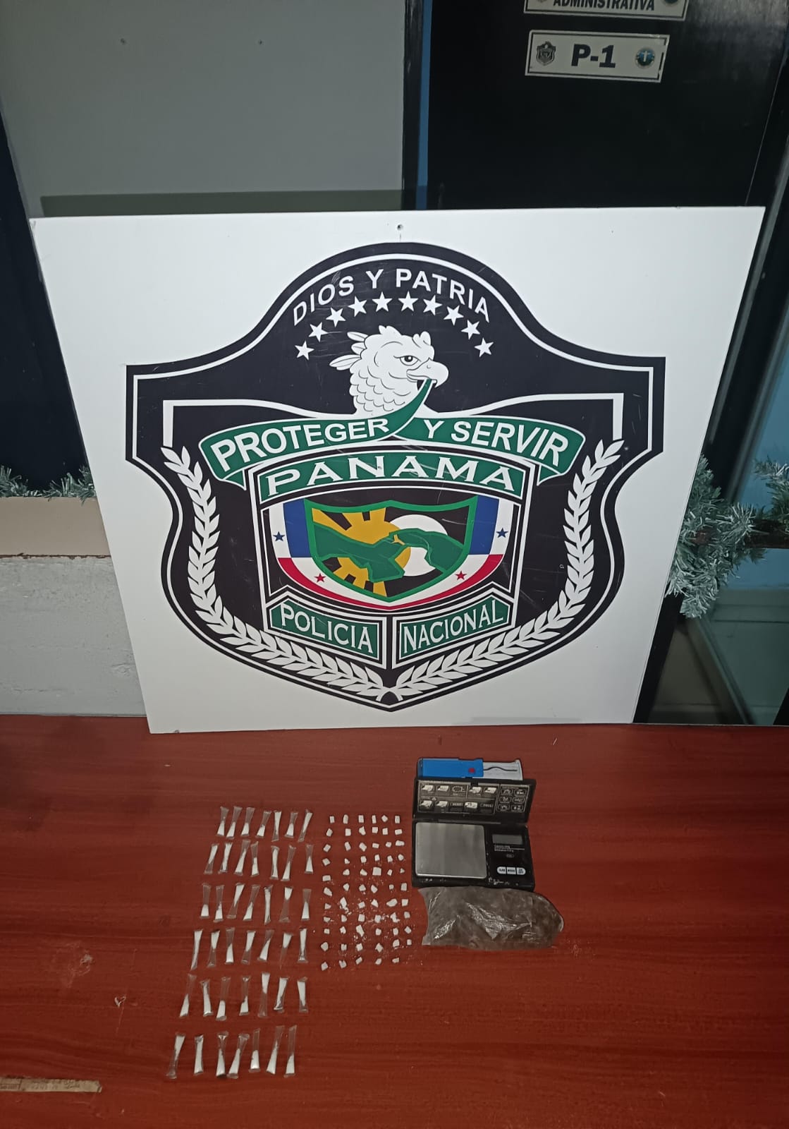 Entre la presunta droga decomisada se encontró, 42 carrizos transparente que en su interior contienen polvo de color blanco que se presume sea cocaína, 65 fragmentos de sustancia de color blanco conocido como piedra, una bolsita plástica que contiene hierba seca que se presume sea marihuana y una pesa digital.