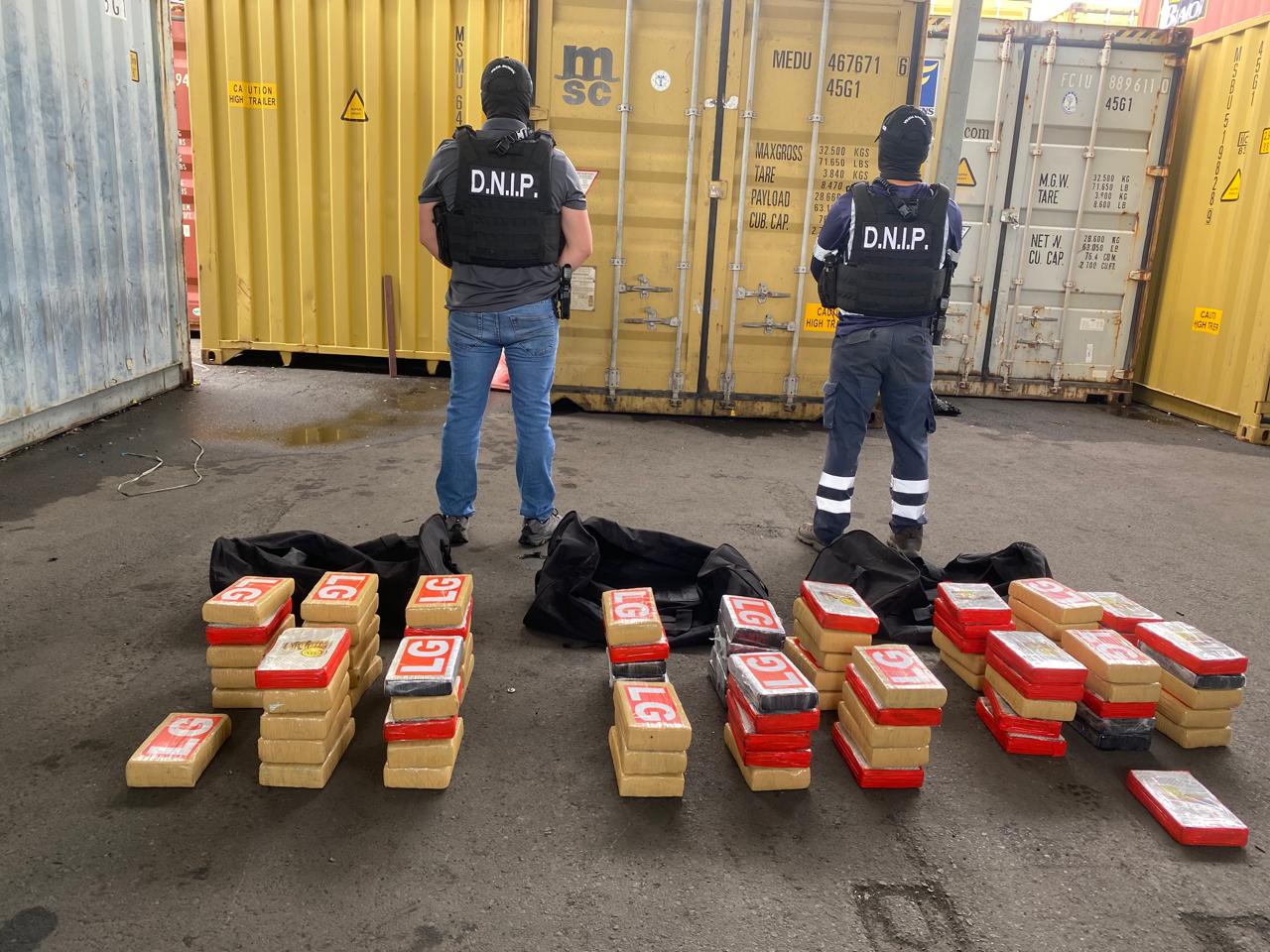 Los paquetes rectangulares forrados con cinta adhesiva se mantenían ocultos dentro de cuatro maletines en un contenedor, proveniente de Perú, con trasbordo Panamá- Bélgica y destino final Dinamarca.