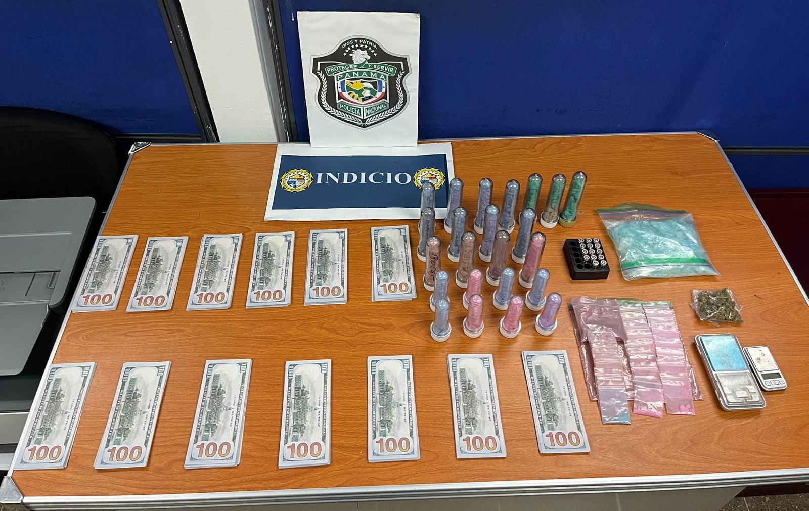 Mediante diligencia de allanamiento a un apartamento ubicado en el corregimiento de Río Abajo, la Policía Nacional y el Ministerio Público decomisan la peligrosa droga rosa conocida como tusi, además de dinero supuestamente falso, municiones y una pesa digital.