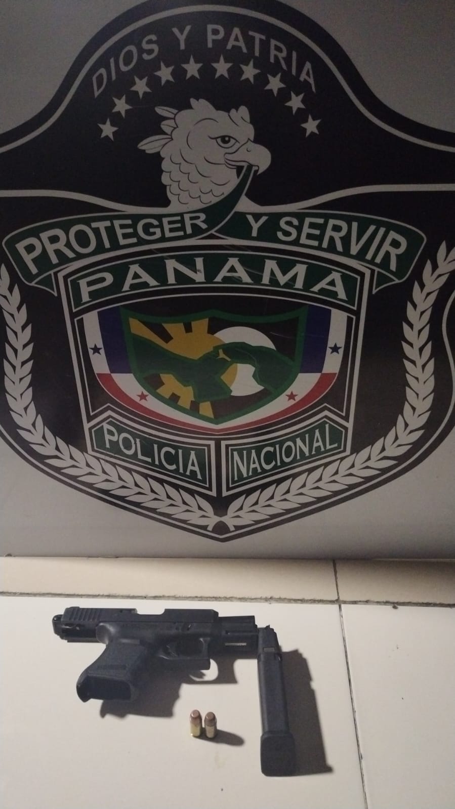 La Policía Nacional mediante acciones preventivas y operativas, decomisa un arma de fuego en el sector de Calle H, Paraíso, distrito de San Miguelito.