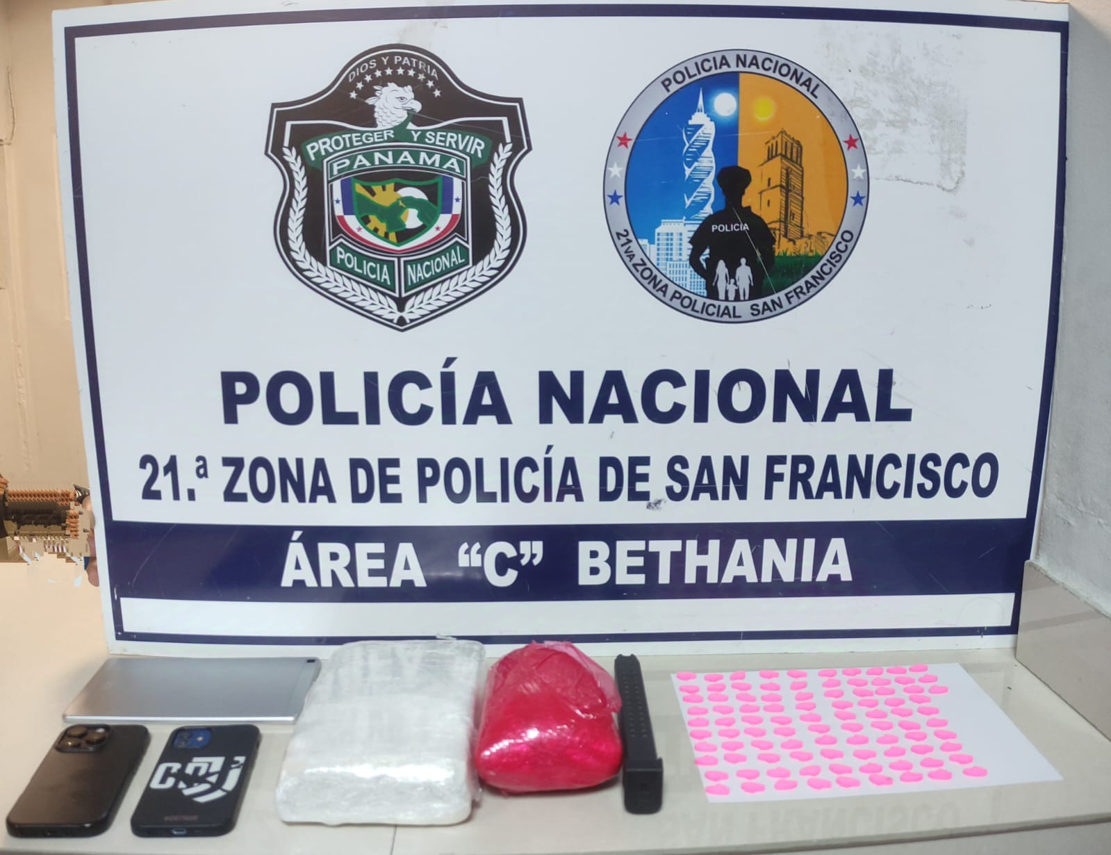 Las unidades de la Policía Nacional a través de los patrullajes motorizados "Lince" aprehenden dos ciudadanos panameños a quienes se les incautaron dos paquetes con presunta droga, además de un proveedor vacío, unas 93 pastillas con supuesta droga sintética, entre otros indicios, vinculados al delito relacionado con drogas.
