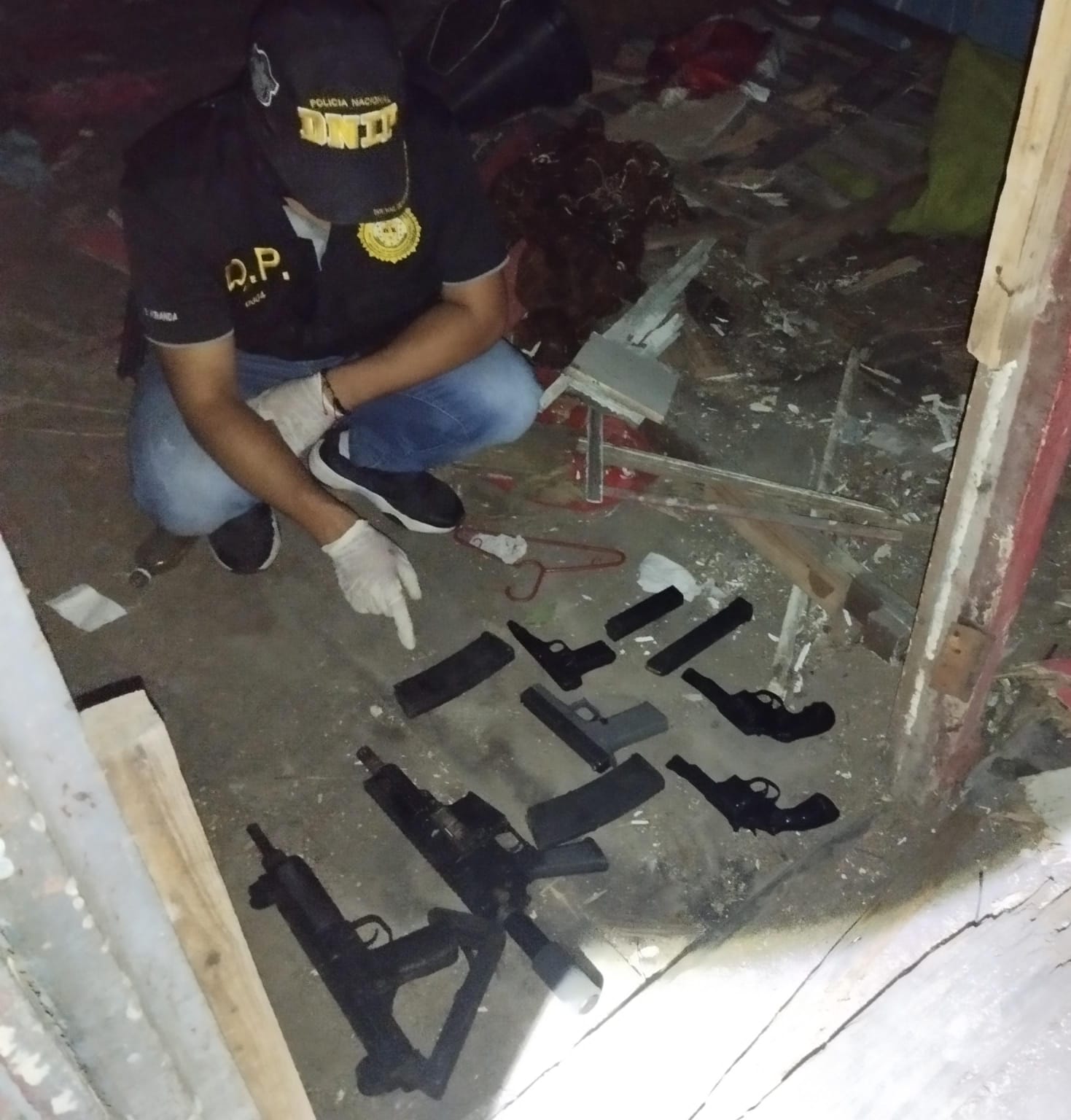 La Policía Nacional siguiendo el lineamiento de plan firmeza, mediante acciones preventivas y operativas da con el hallazgo de seis armas de fuego en edificio abandonado, ubicado en calle 11 y 12 Justo Arosemena, provincia de Colón.