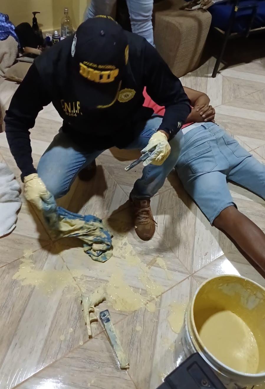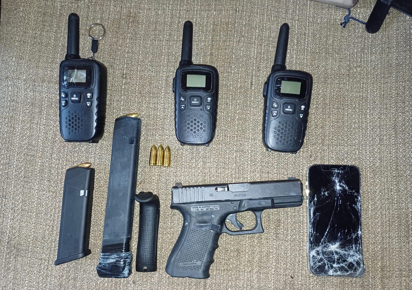 Al momento del allanamiento el aprehendido mantenía el arma de fuego desarmada y escondidas en varios lugares, también se encontró dos proveedores, municiones, radios de comunicación y equipo tecnológico.
