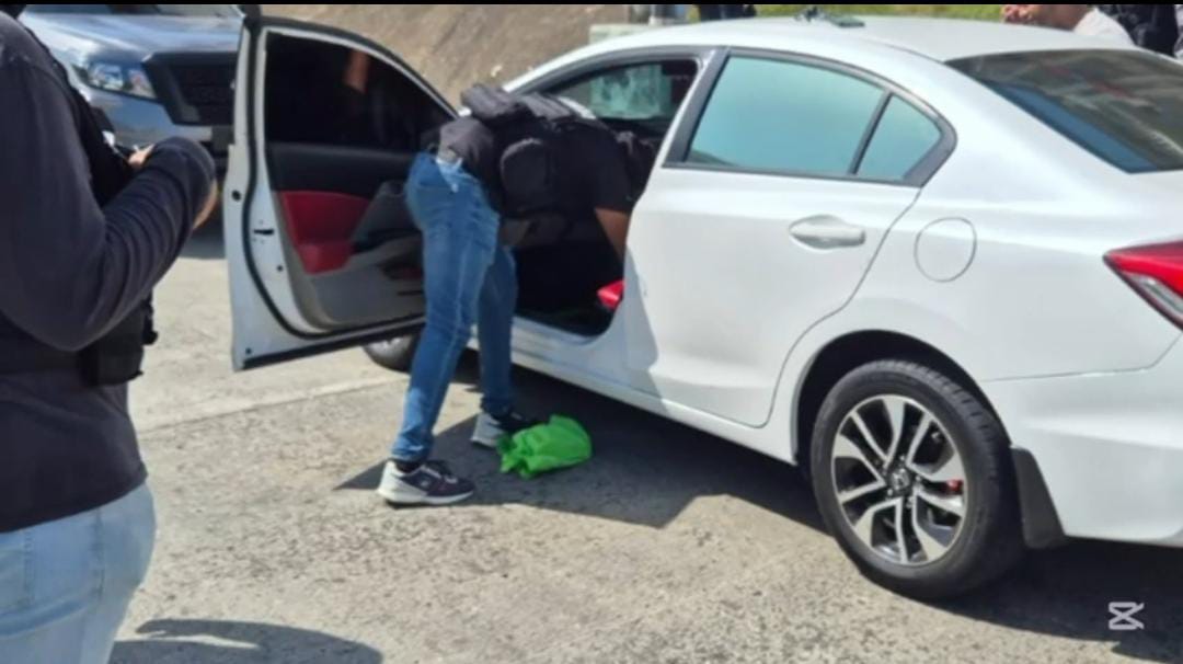 La acción policial se produjo en Altos de Los Lagos del corregimiento de Cristóbal Este, donde unidades motorizadas linces detienen el auto y a través del artículo 325 revisan el auto logrando el decomiso de la droga.