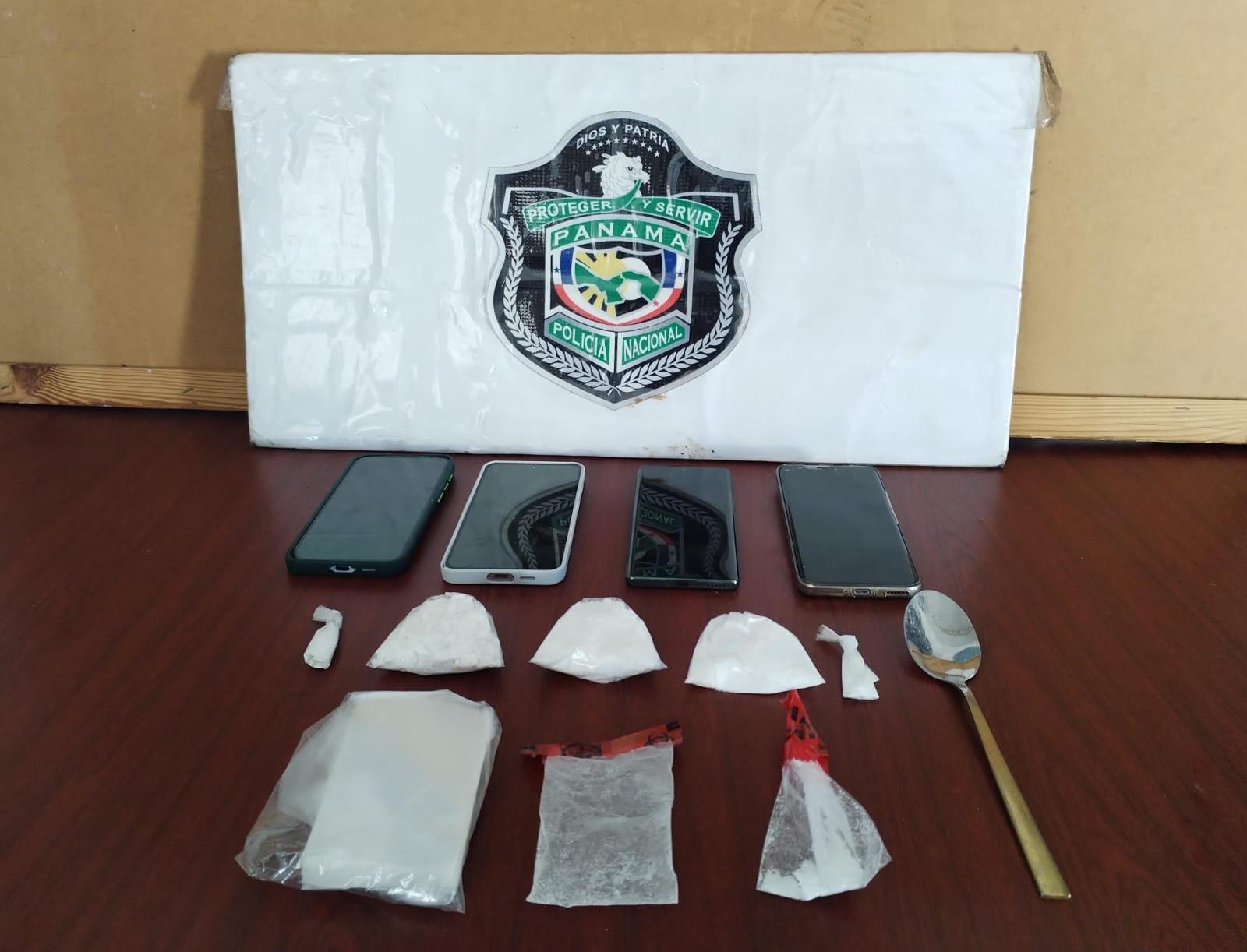 Entre los indicios recuperados se encuentran seis bolsitas de regular tamaño contentivas de polvo blanco, sea la droga cocaína, además de cuatro celulares de diferentes marcas.
