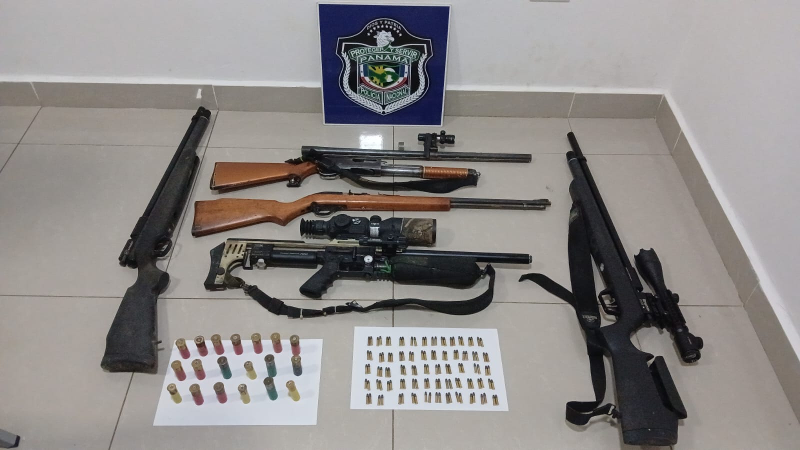 Unidades de la Policía Nacional en conjunto con el Ministerio Público, en el marco del Plan Firmeza logran el decomiso de cinco armas de fuego, luego del allanamiento a una residencia ubicada en la comunidad de La Peña en la provincia de Veraguas.
