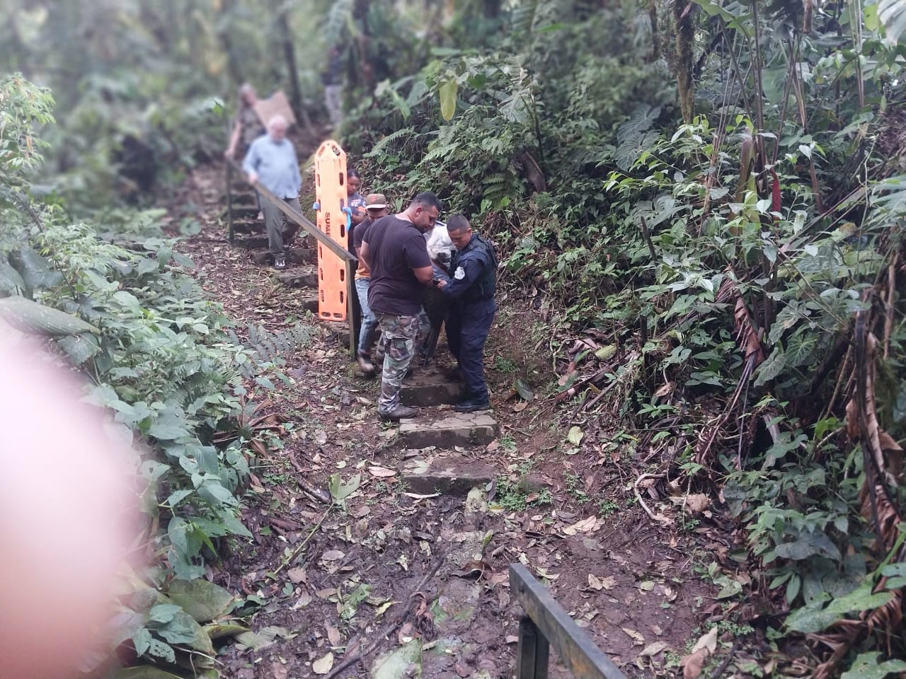 Se le brindó rescate y asistencia a una ciudadana extranjera, de Nacionalidad Estadounidense, quien al practicar el deporte de senderismo sufrió una caída accidental, desde una altura de 4 metros al pasar sobre un puente de madera.