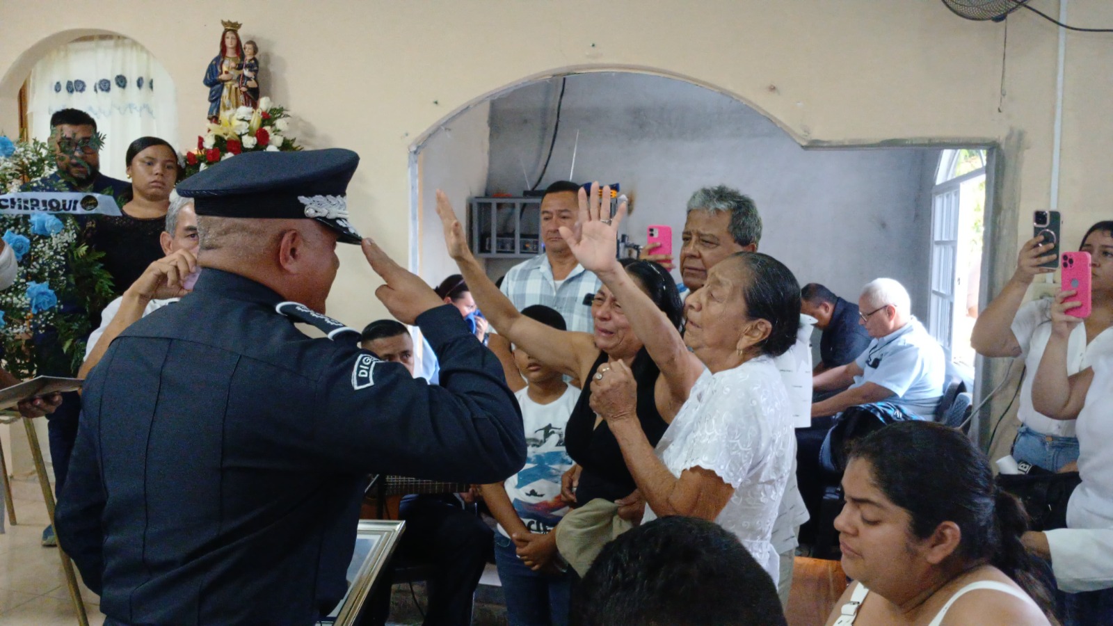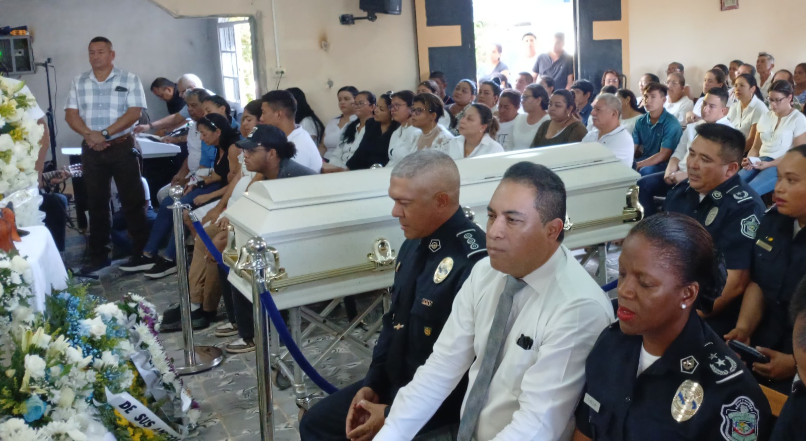 En la ceremonia estuvo el subdirector general de la Policía Nacional, Jorge Dominguez, quien en nombre del director general, Jaime Fernández y de todos los miembros de la institución, manifestó sus condolencias a sus familiares, haciéndoles entrega de un cuadro y la resolución de duelo.