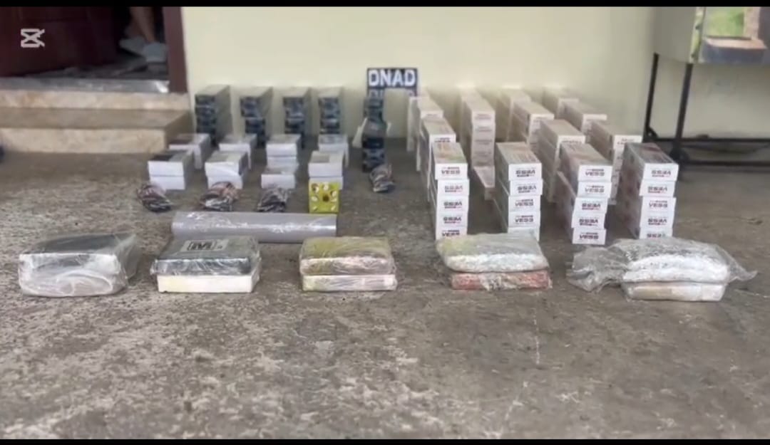 En esta acción policial, se decomisaron 11 paquetes de presunta droga, 101 paquetes de cigarrillos de dudosa procedencia y una bolsita plástica contentiva de hierva seca que se presume sea marihuana.