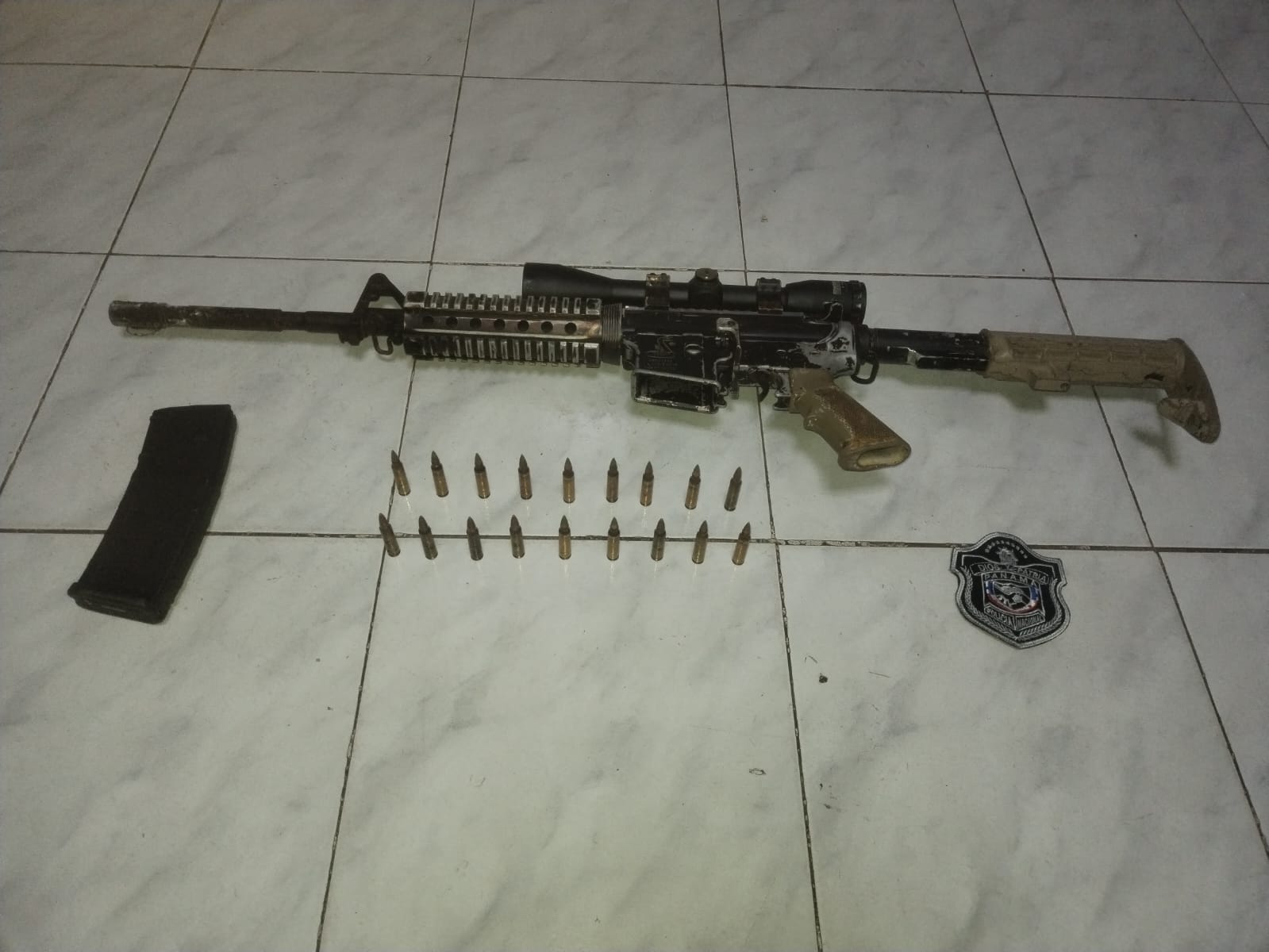 En el marco del Plan Firmeza, la Policía Nacional mediante acciones operativas da con el hallazgo de un arma de fuego tipo Fusil M4, proveedor y municiones en el sector de La Barraca, La Comunitaria, corregimiento de Santa Ana.