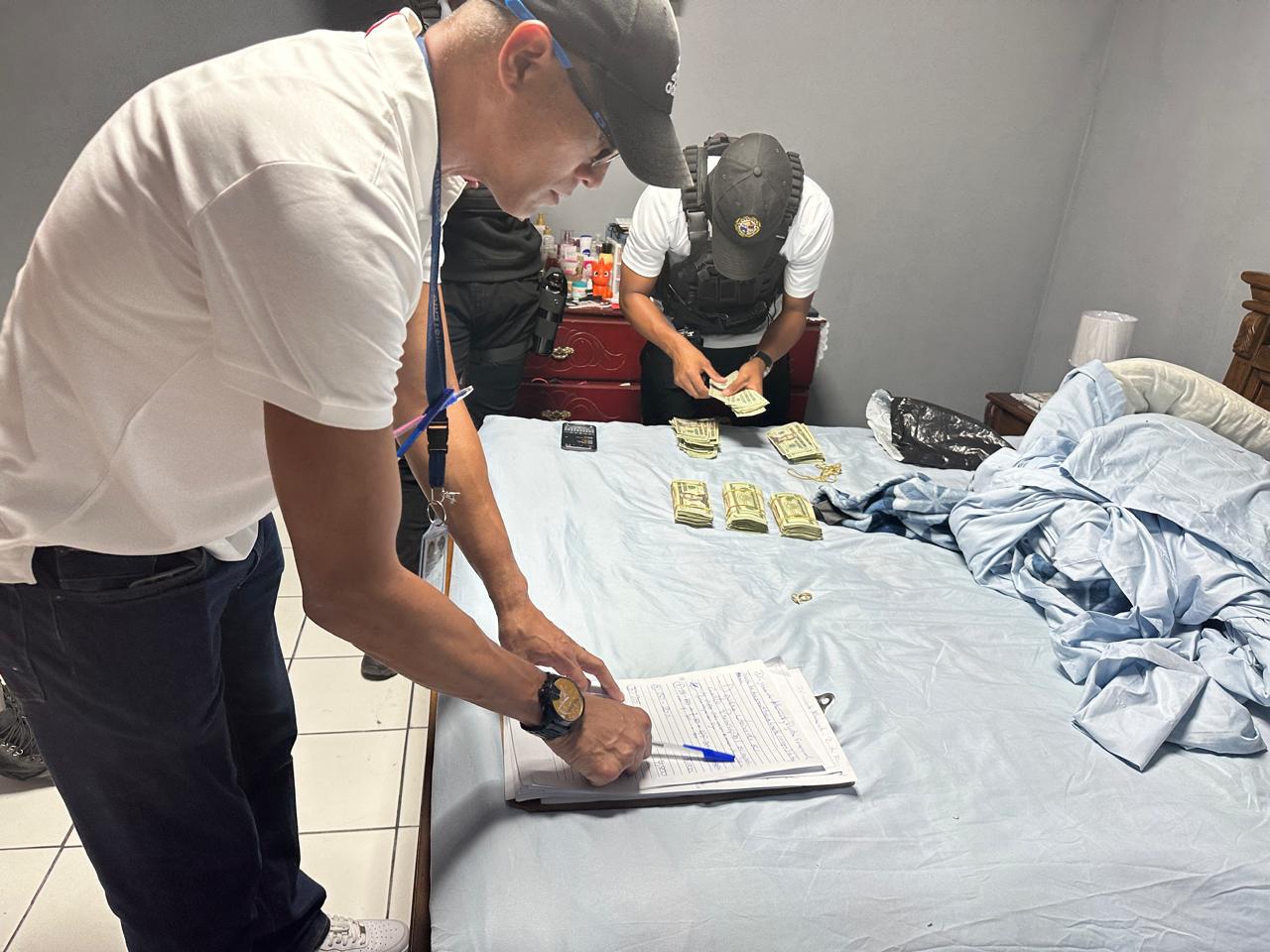 En el registro a la residencia se ubica gran suma de dinero que al ser contabilizado más de 44 mil dólares en efectivo, asimismo se decomisan equipo tecnológicos, sunchos y documentos relacionados a la empresa víctima de hurto.