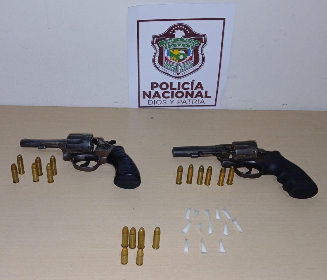 A este ciudadano, se le decomisó un arma de fuego tipo revólver y varias municiones. De igual forma en los predios donde se realizaba la diligencia se da con el hallazgo de otra arma de fuego tipo revólver con municiones.