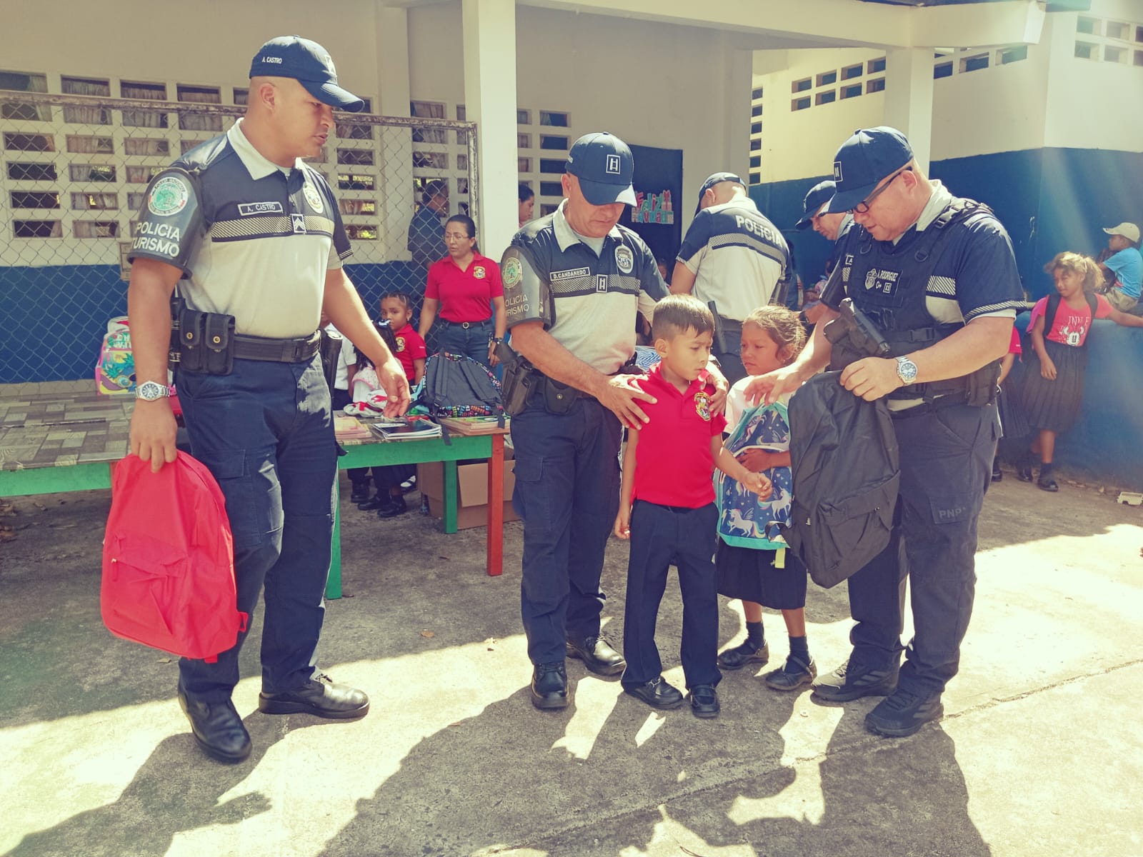 Un total de 64 niños y niñas del Centro Educativo y Básico General Santa Catalina, recibieron una significativa donación de útiles escolares, por parte de las unidades de la Policía de Turismo en Veraguas, como parte de las estrategias preventivas establecidas en el Plan Firmeza.