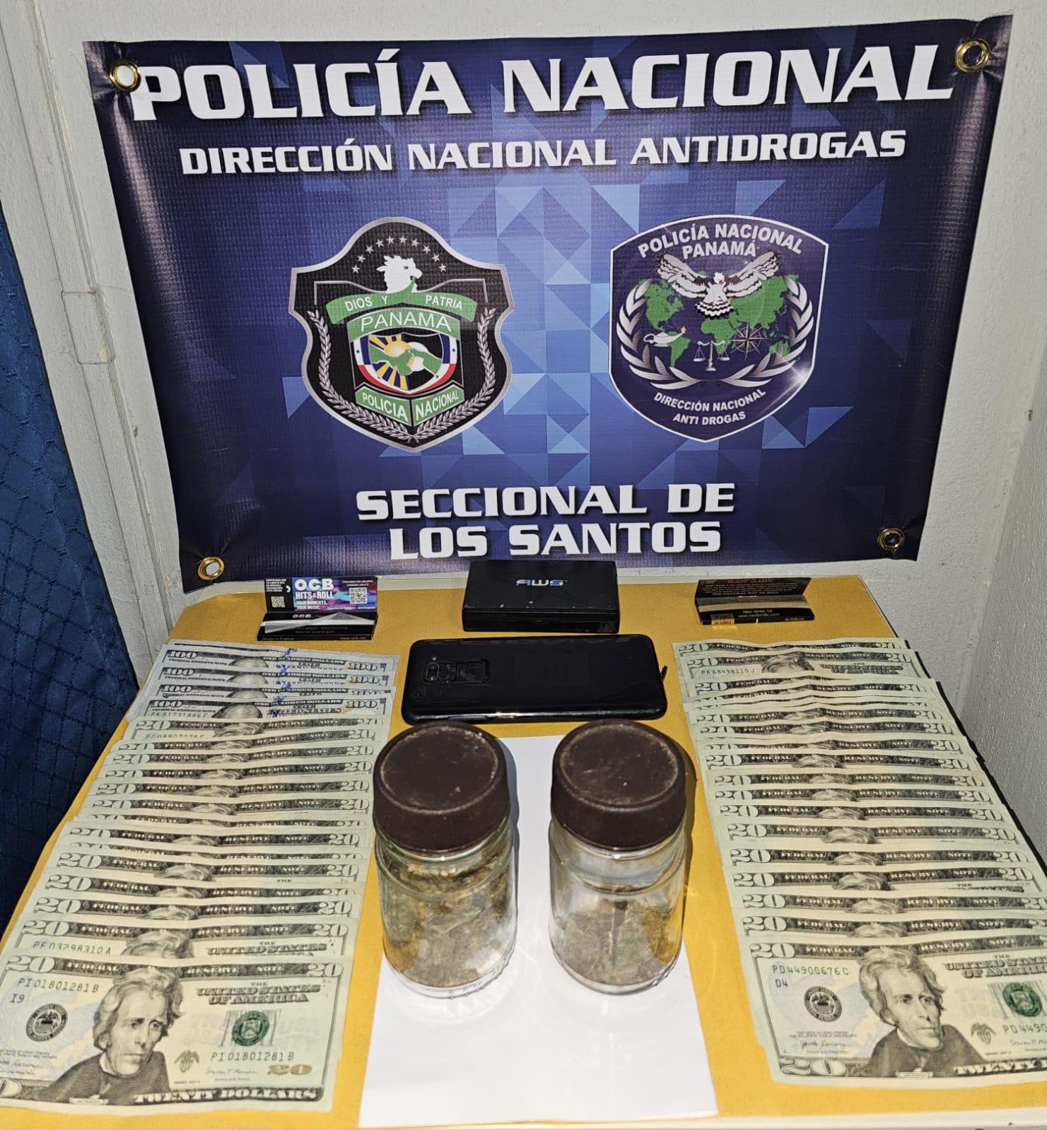 La acción policial se registró en el corregimiento El Guásimo, distrito de Los Santos, cuando producto del allanamiento se decomisa dos frascos de vidrio contentivo de hierba seca que se presume sea marihuana, un pesa digital, B/. 1,965.00 en efectivo y un celular.
