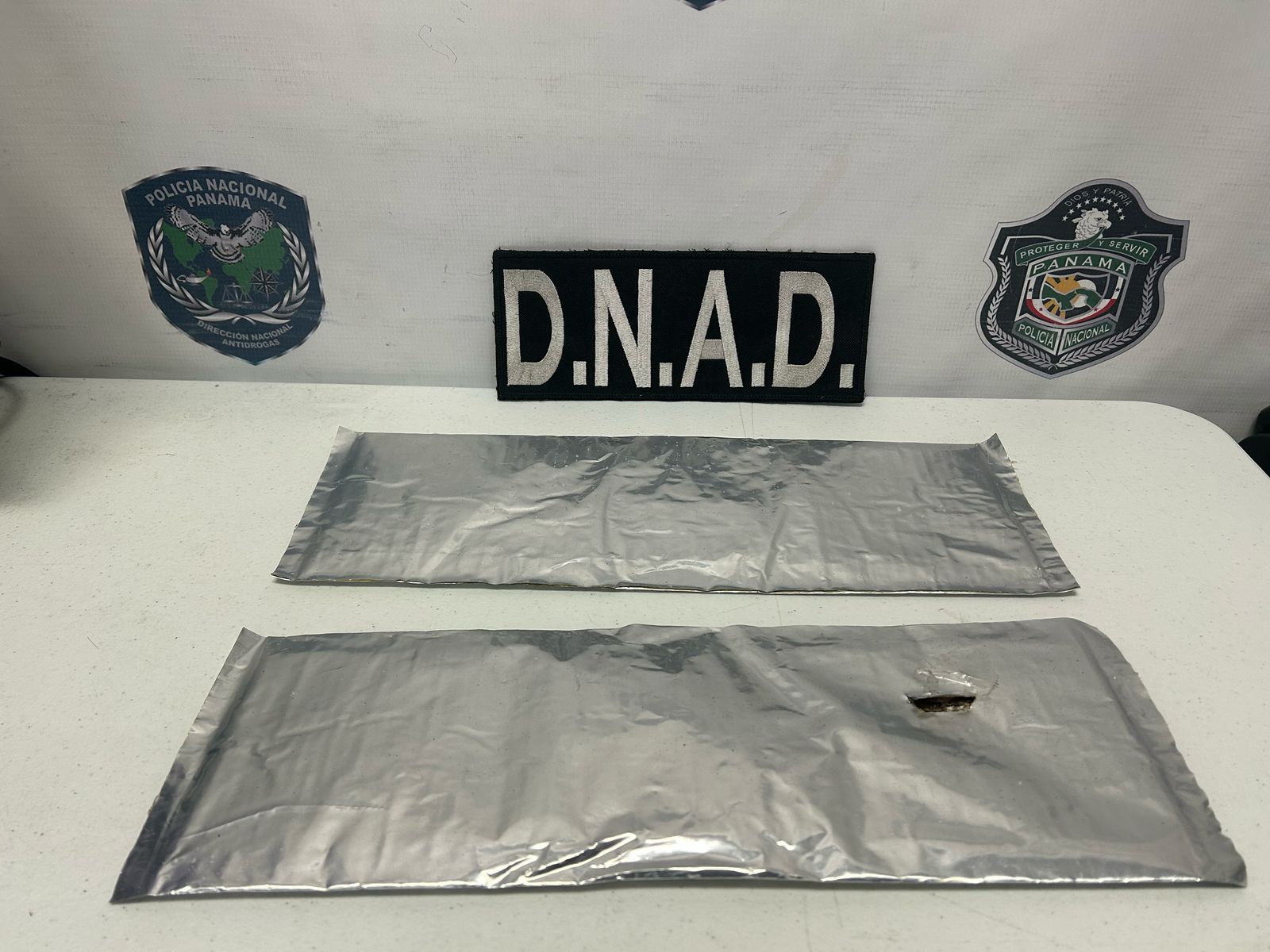Unidades antidrogas de la Policía Nacional, a través de las diligencias de allanamiento y registro en conjunto con el Ministerio Público, incautan dos planchas de presunta droga en una bodega, en el área de carga del Aeropuerto Internacional de Tocumen.