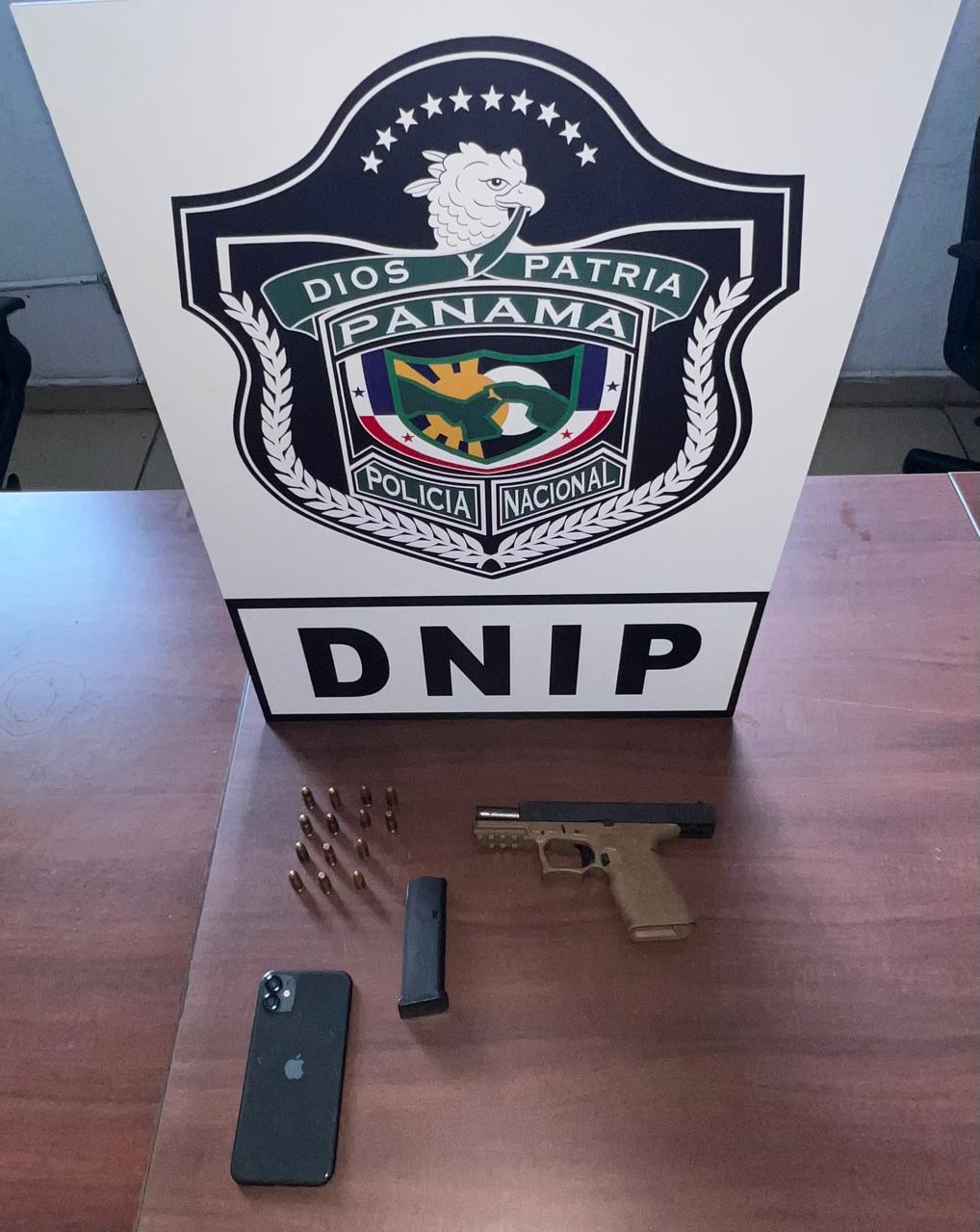 Siguiendo los lineamientos del Plan Firmeza, unidades de la Policía Nacional en asocio con el Ministerio Público, aprehende a una persona de 25 años y le decomisa un arma de fuego, proveedor, municiones y un celular en el corregimiento de Cativá.