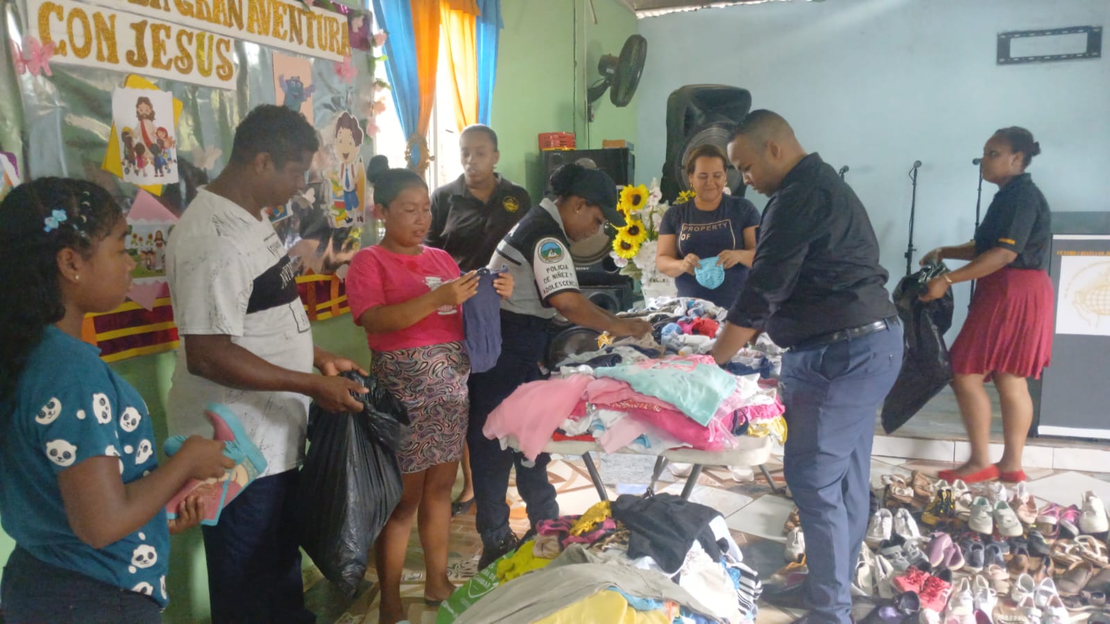 Unidades del Servicio Policial de Niñez y Adolescencia de Arraiján en coordinación con el centro Educativo Panamá Heights International Academy y el Centro Cristiano Jesús es Mi Fortaleza, realizaron una labor social en la comunidad de Gosén en el corregimiento de Burunga, distrito de Arraiján donde beneficiaron a 20 familias que recibieron bolsas de comidas, ropa en buen estado y calzados para todas las edades, a su vez, mostraron agradecimiento por el gesto altruista de la Policía Nacional junto con al centro educativo del sector.
