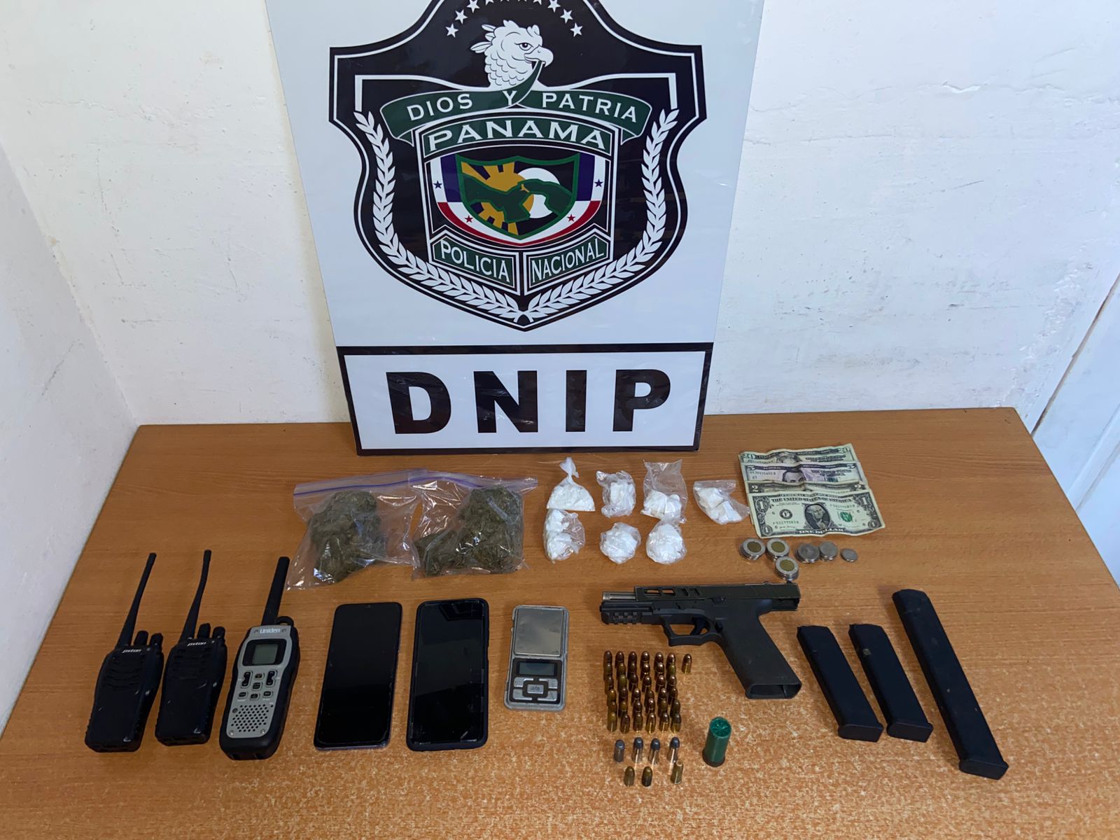 Durante la acción operativa se incautaron múltiples indicios, tales como: un arma de fuego, tres proveedores, municiones, celulares, y radios walkie-talkies. Además, se realizó el decomiso de presuntas sustancias ilícitas y herramientas relacionadas con su distribución.
