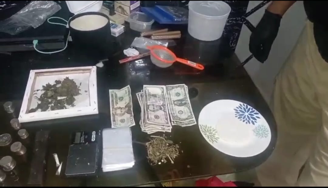Esta persona se mantenía en una residencia, donde se realizó la diligencia de allanamiento y registro, en coordinación con el Ministerio Público, lográndose ubicar y decomisar hierba seca, sustancias sólidas y cierta cantidad de polvo blanco que se presume sean drogas, que estaban en diferentes áreas del inmueble.