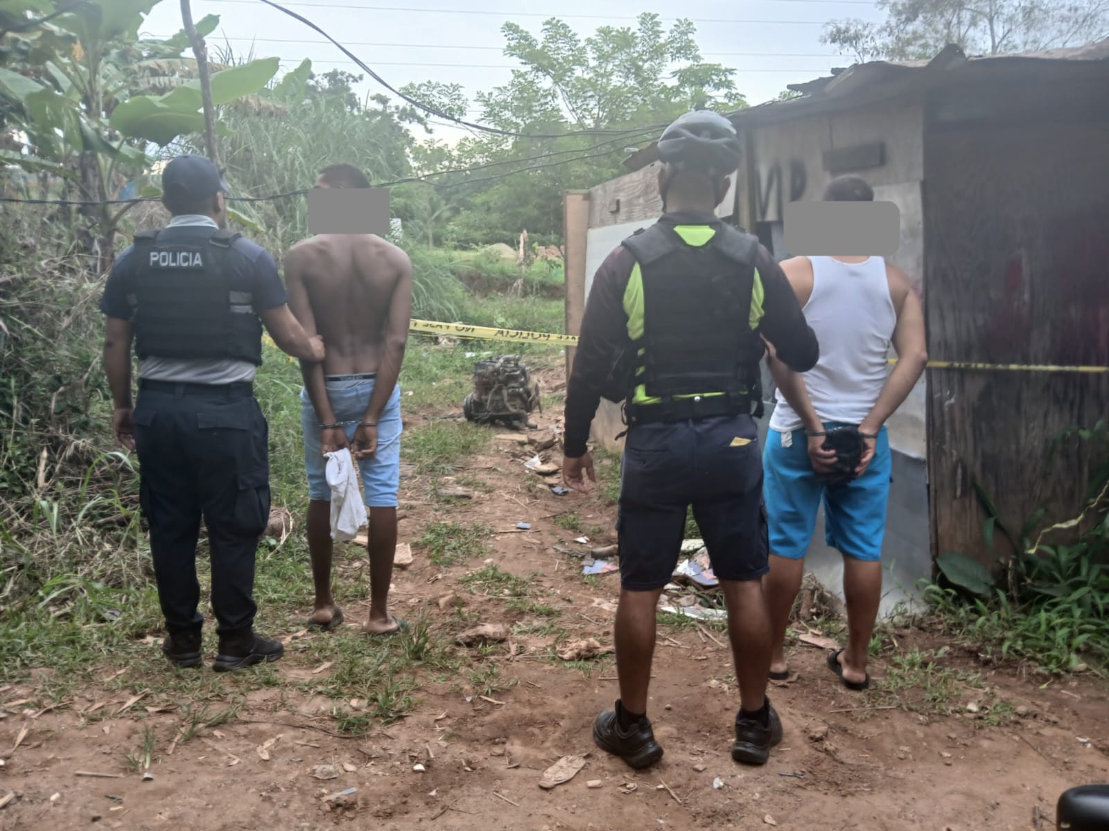 Además de ello, mediante diligencia de allanamiento y registro en el sector 20, se dio con la aprehensión en flagrancia de dos sujetos que se encontraban desmantelando un vehículo tipo pickup, en una casa improvisada.