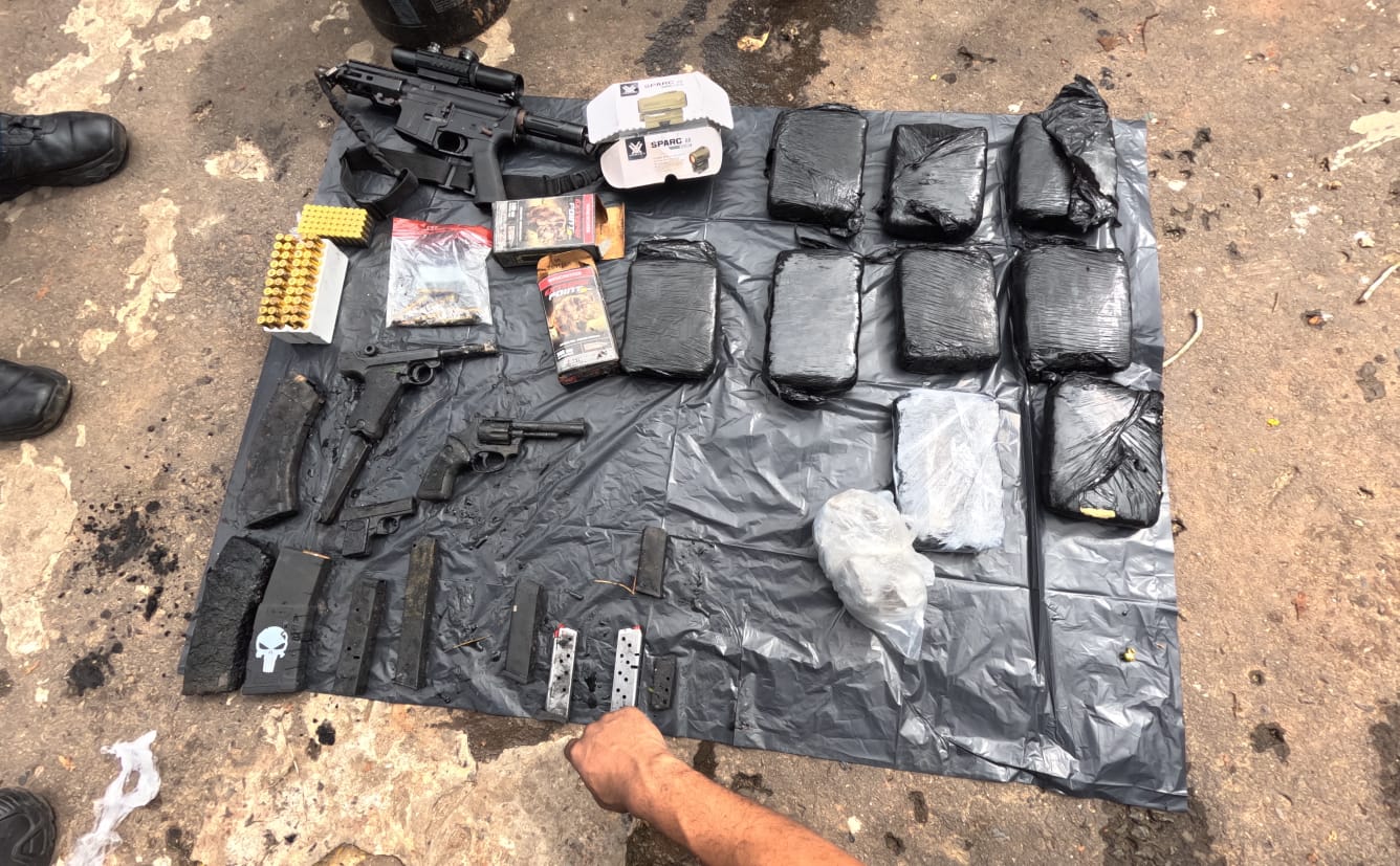 Asimismo, a un costado de donde estaba estacionado el vehículo allanado, se dio con el hallazgo de un fusil, tres armas de fuego y municiones de diferentes calibres.