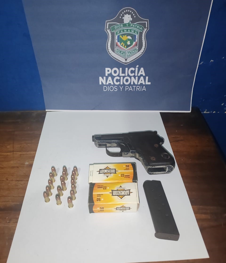 Unidades de la Policía Nacional de ronda preventiva en el sector de El Retorno, corregimiento de David Sur, provincia de Chiriquí, decomisaron un arma de fuego y un cargador con 15 municiones.