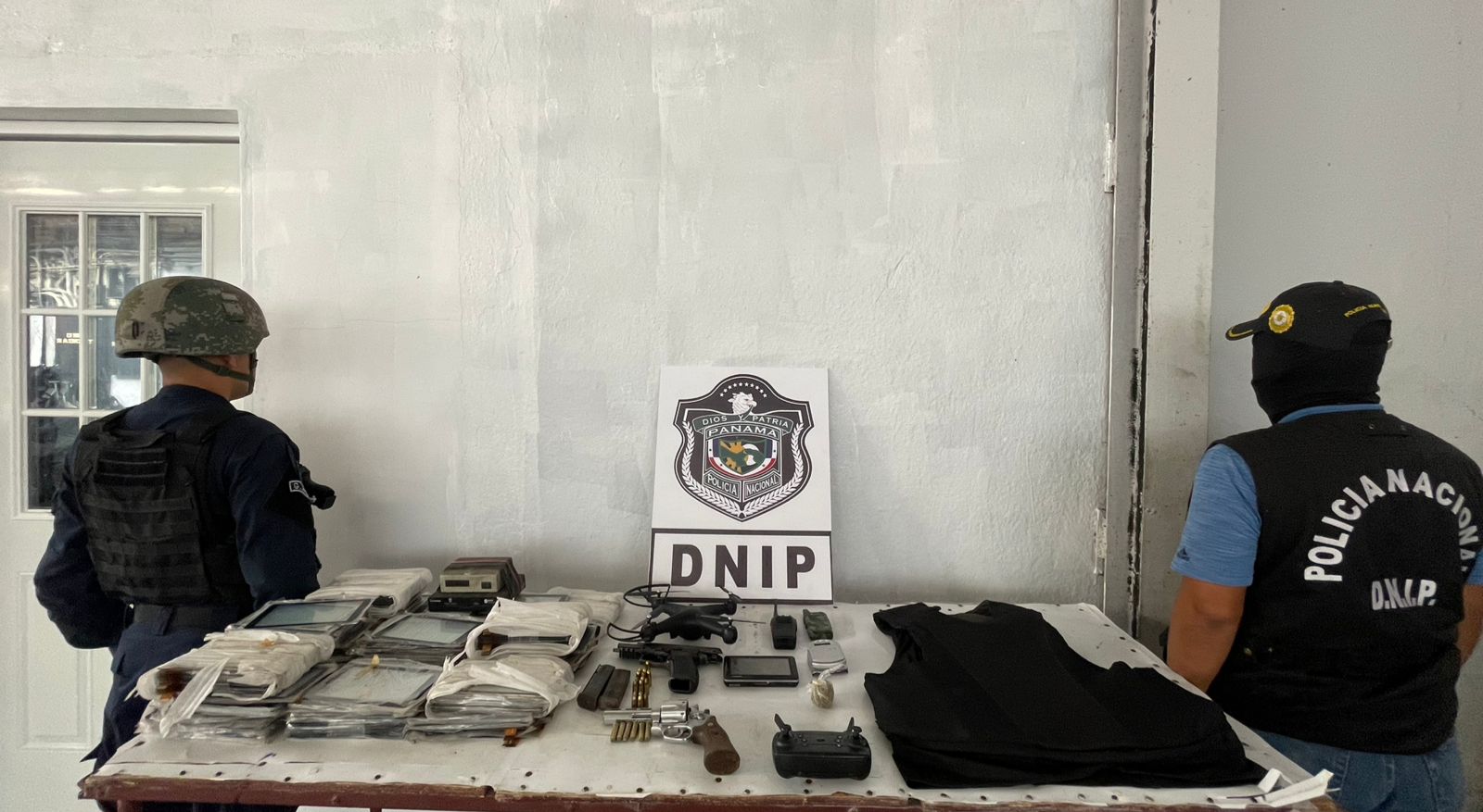 Tras acciones operativas desarrolladas en el corregimiento de Calidonia, las unidades policiales incautan dos armas de fuego calibre 38 y 9 milímetros, dos proveedores, 22 municiones, equipos tecnológicos, un chaleco y un dron.