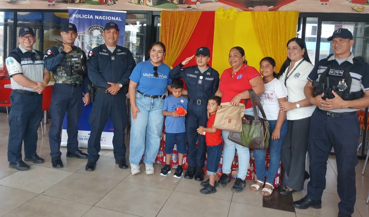 La Policía Nacional hizo realidad el sueño del niño José Javier Hernández, quien padece angiofibroma nasal, al permitirle vivir una experiencia especial junto a unidades policiales, en coordinación con la Make-A-Wish Foundation. El menor fue recibido en su residencia en un vehículo policial y posteriormente compartió un desayuno en McDonald’s Chitré. Además, visitó la Zona de Policía de Herrera, donde interactuó con distintas unidades y disfrutó de una demostración del equipo canino. Con esta actividad, la Policía Nacional reafirma su compromiso con el bienestar emocional y social de la niñez, fortaleciendo los lazos de cercanía con la comunidad. |