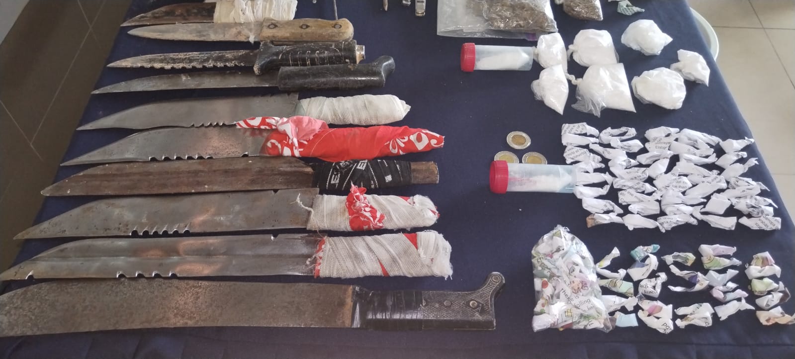 TRAS REQUISA EN LA CÁRCEL PÚBLICA DE SANTIAGO, POLICÍA DECOMISA 18 PLATINAS Y 7 ARMAS PUNZOCORTANTES
