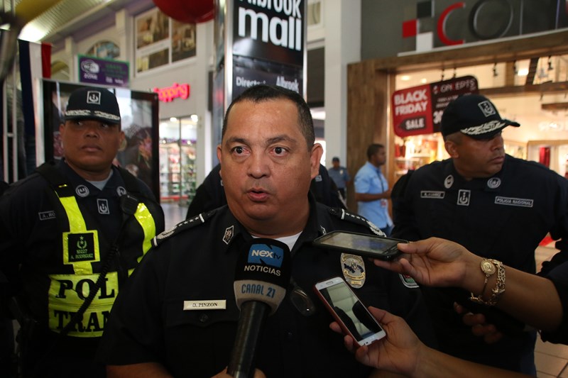 Desde tempranas horas de este viernes 25 de Noviembre más de 300 unidades de la Policía Nacional se desplazaron hacia los diferentes centros comerciales del país, para garantizar la seguridad de los consumidores que se apersonaron a realizar sus compras del “BLACK FRIDAY”, esperando aprovechar las ofertas promocionales en variedad de artículos. El Director General de la Policía Nacional, Omar Ariel Pinzón hizo un recorrido en el exterior e interior de Centro Comercial de Albrook Mall, momento oportuno para hacer un llamado a la ciudadanía a seguir las recomendaciones de seguridad, dadas previamente por esta institución. “Son un total de 19 centros comerciales a los que se les están brindando seguridad en un horario de 4:00 a.m. hasta las 11: 00 p.m, tenemos el 100% de las unidades activadas por las festividades de fin de año, porque nuestro compromiso es garantizar la seguridad de todos", señaló Pinzón. Los ciudadanos tanto nacionales como extranjeros, que asistieron a los diversos comercios, mostraron su agradecimiento con los uniformados de la Policía Nacional, al brindarles seguridad y hacerles sentir su protección ente alguna situación, al momento de realizar sus compras. En tanto respecto al operativo de tránsito, el Comisionado Javier Fanuco Director Nacional de Operaciones de Tránsito de la Policía Nacional, destacó que más de 170 unidades refuerzan los puntos críticos, de mayor concentración de congestionamiento vehicular para agilizar el tráfico. “La ciudadanía debe de tener mucha paciencia, se les recomienda ir en un solo vehículo a realizar las compras, que respeten las señales de tránsito y lugares donde estacionarse, para evitar que sean sancionados” resaltó Fanuco. Dentro de las instalaciones de los diversos centros comerciales se establecieron, puestos de orientación, donde unidades entregaban a las ciudadanía volantes con recomendaciones. La Policía Nacional continuará con su tarea de proteger y servir a la ciudadanía, recordándoles que la seguridad es compromiso de todos, tomando en cuenta las recomendaciones que hace esta institución de seguridad.