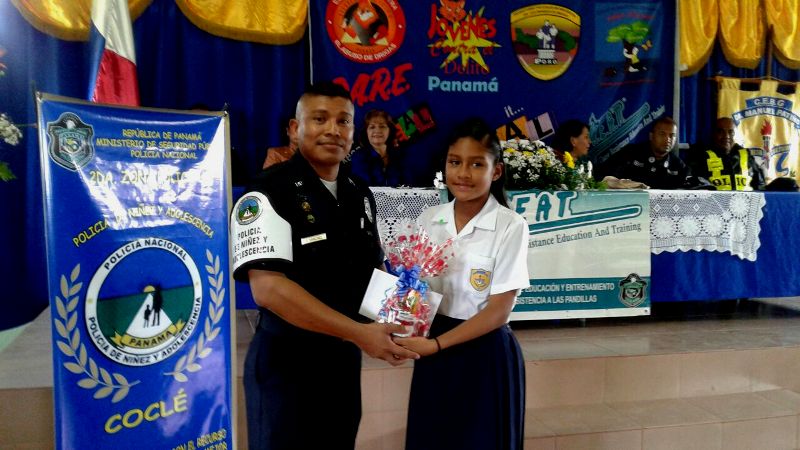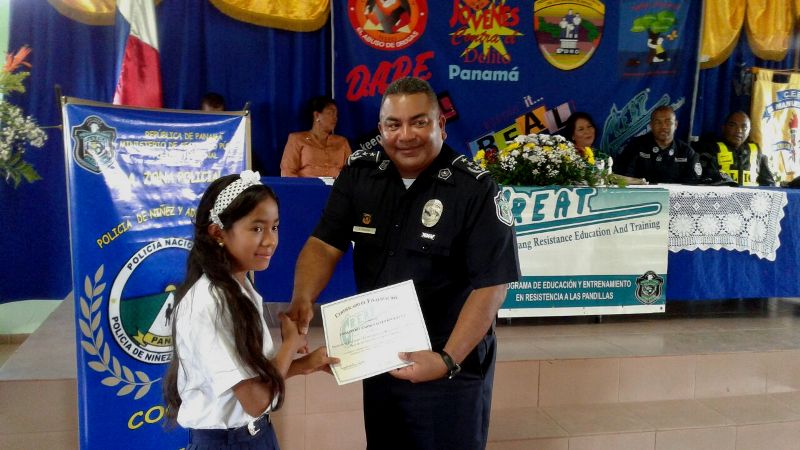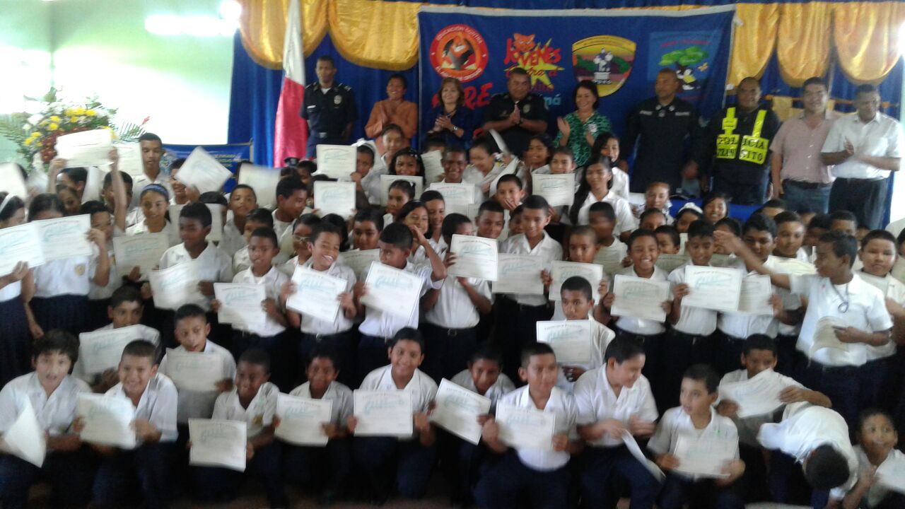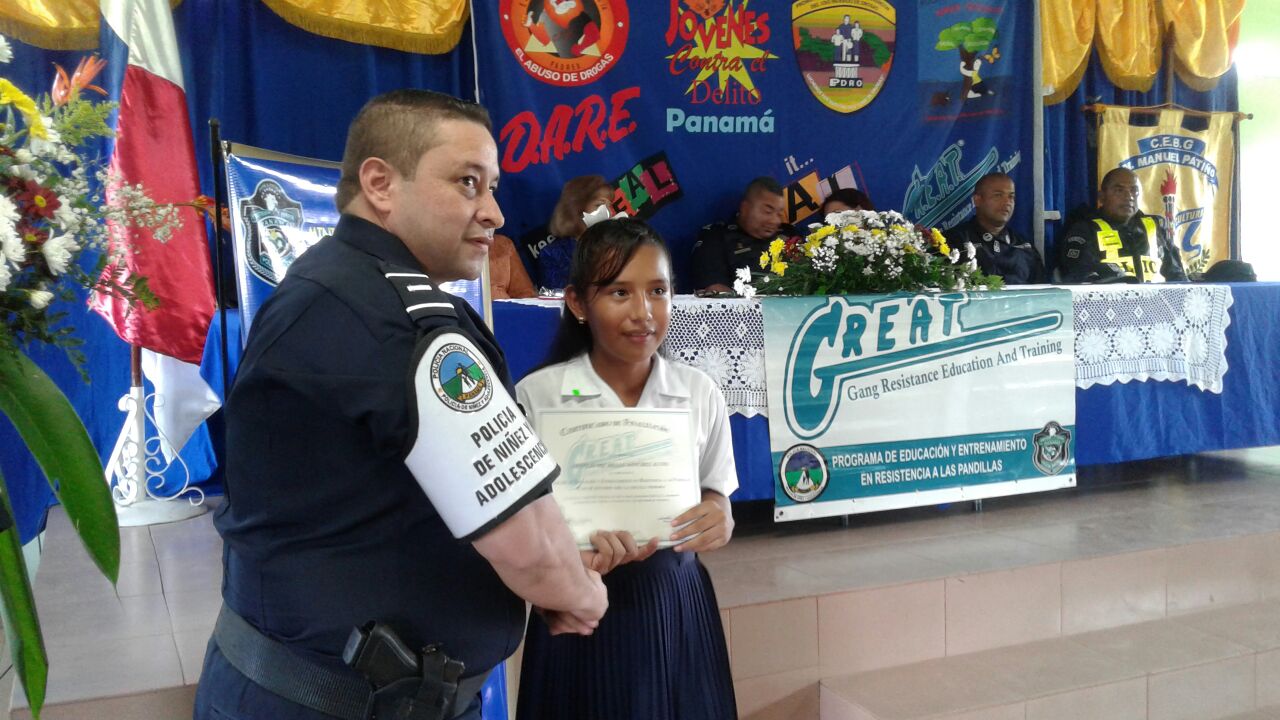 Ciento 23 niños de la escuela Dr. Manuel Patiño en el distrito de Antón dijeron "NO" a las drogas, este viernes en horas de la mañana, con la culminación del programa preventivo de la Policía Nacional, educación y Entrenamiento en Resistencia a las Pandillas ( G.R.E.A.T.). Un programa que tiene por objetivo garantizar los conocimientos en materia preventiva a través de la teoría a estudiantes, padres de familia y educadores y se brindó en un período de ocho a trece lecciones, donde todas las partes se involucraron, manifestaba el sargento Erick Sánchez, instructor del programa. La actividad conto con la presencia de la señora alcaldesa del distrito de Antón la licenciada Jislena Vidales de Corro, el comisionado Aníbal Prados, jefe de la Zona Policial, el ejecutivo de la Zona comisionado Carlos Betancourt, el Mayor Dudley Steell encargado del área C, el Mayor Adán Fernández, la directora del plantel educativo la magister Fermina Vissuetti, la magister Etelvia Lozano, supervisora regional del Ministerio de Educación, el doctor Eric León en representación del diputado Raúl Hernández, administrativos de la escuela y padres de familias. El acto inicio con la invocación religiosa por parte del delegado de la palabra el señor Fidel Montoya, quien agradeció a Dios por permitirle a la Policía Nacional impartir estas docencia instruyendo a nuestros niños por el camino del bien. El programa conto con declamación, bailes folklóricos, entrega de certificados y reconocimiento por su comportamiento y entrega, durante el curso a los estudiantes Madison Morán del VI° B, Artemio Ramiro Delgado del V°B y Antonio Muñoz del VI° A, obsequios que fueron entregados por las autoridades presentes. En este sentido, el comisionado Aníbal Prados, manifestó que este programa es de mucho beneficio para los jóvenes porque les brinda las herramientas para evitar involucrarse en actos delincuenciales. Prados afirmaba, " Nos sentimos complacidos de contribuir con los diversos programas preventivos, donde a nivel de la provincia el departamento de Niñez y Adolescencia a graduado alrededor de 1900 estudiantes". Por su parte la alcaldesa de Antón la licenciada Jislena Vidales de Corro, manifestaba, estar regocijada por el trabajo que realiza la Policía Nacional con la capacitación a los estudiantes a través de los programas preventivos y ofrecerles las herramientas para decirle no a las drogas y las pandillas. La directora del plantel la Magister Fermina de Vissuetti, agradeció a la Policía Nacional por su labor que realiza y por haberlos tomado en cuenta en las capacitaciones, que serán de buen provecho para nuestros estudiantes.