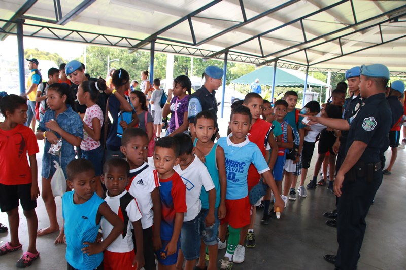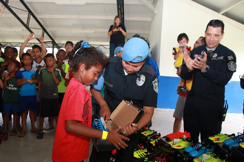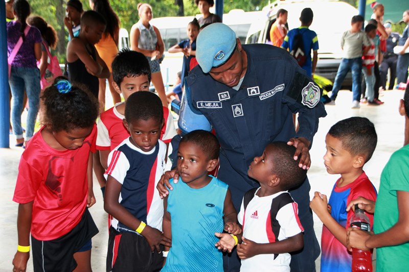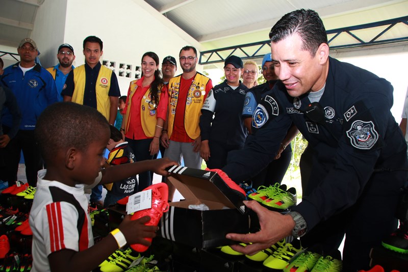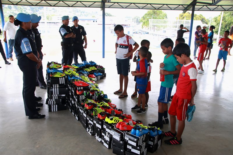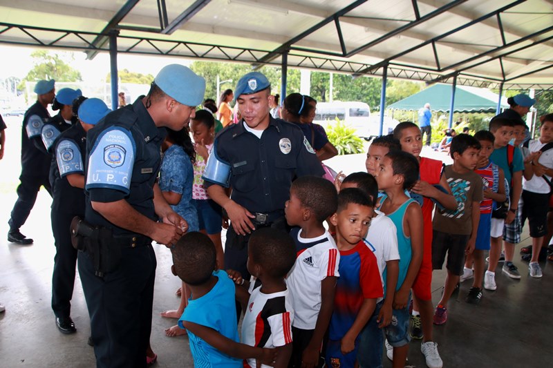 Un total de 210 niños que participan de los diferentes programas que lleva a adelante la Unidad Preventiva Comunitaria (UPC) de Samaria, se beneficiaron de le entrega de tacos, auspiciados por la Presidencia de la República, evento realizado en el Complejo Deportivo de Santa Marta, en el distrito de San Miguelito. El subcomisionado Raymundo Barroso y jefe de esta unidad estuvo presente y resaltó lo importante que es la presencia de las unidades en los barrios en riesgo buscando como alternativa el deporte y que la niñez de estos sectores participe de ellos. “Para el Director General de la Policía Nacional, Omar Pinzón, es importante la relaciones con los líderes deportivos de los sectores en San Miguelito, apostando a las actividades deportivas con la participación de la niñez, para evitar el flagelo de la delincuencia” señaló Barroso. En esta actividad estuvieron presentes personal de la Presidencia de la República, Unidades de la UPC, de Niñez y Adolescencia, San Miguelito, acompañados por miembros del Club Activo 20-30 de este sector quienes realizaron un pequeño convivo para los pequeños. |