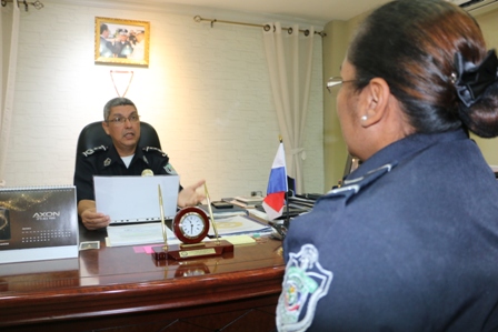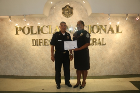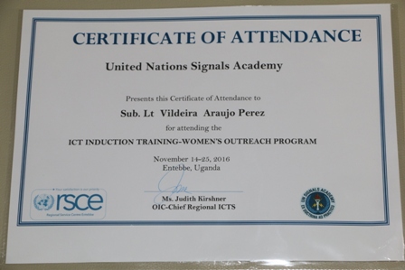 La Subteniente de la Policía Nacional Vildeira Araujo Pérez regresó a suelo panameño luego de finalizar el curso sobre “Comunicación a Mujeres” de la Organización de las Naciones Unidas (ONU), para completar misiones. Este curso se llevó a cabo del 14 al 25 de noviembre en la United Nations Signals Academy , ubicada en Uganda , África. Fue dictado en ingles a varias mujeres de distintos países como India , Ecuador, Chile, Panamá entre otros. A la subteniente se le entregó un diploma de participación, así como también un distintivo. La uniformada fue recibida por el comisionado Manuel de León, Secretario General de la Policía Nacional, quien la felicitó por haber culminado con éxito este curso.
