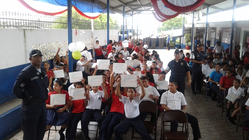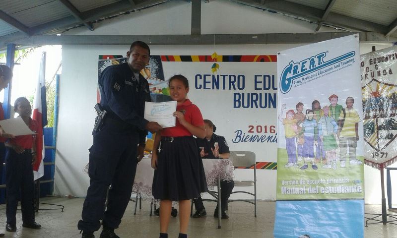 Un total de 241 estudiantes de quinto y sexto grado de la Escuela Burunga en el distrito de Arraiján, culminaron este viernes 25 de sus diplomas de culminación del programa de Educación y Entretenimiento en Resistencia a las Pandillas (G.R.E.A.T) La ceremonia de entrega de diplomas se realizó en el gimnasio de la escuela y fue presidida por el Mayor Juan Joseph, Jefe del Área A en representación del Jefe de la Treceava Zona Policial, Comisionado Luis Navarro, quien al hacer su intervención felicitó a los estudiantes por haber participado en este curso que tuvo una duración de 4 meses. El programa fue impartido por el Subteniente José Ripamonte, del Servicio de Niñez y Adolescencia.
