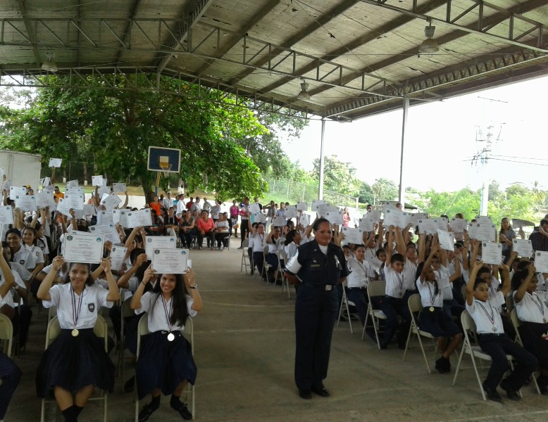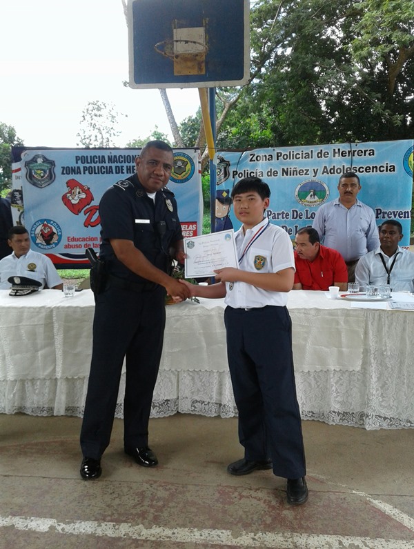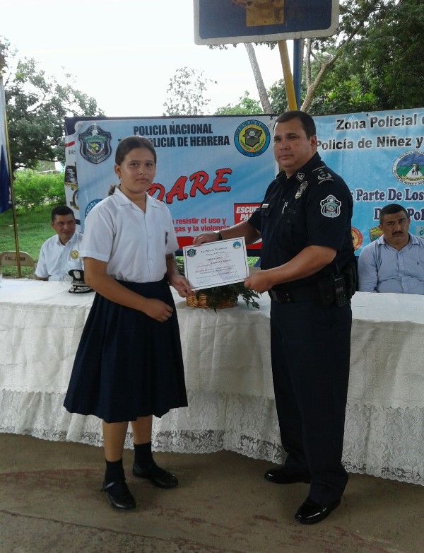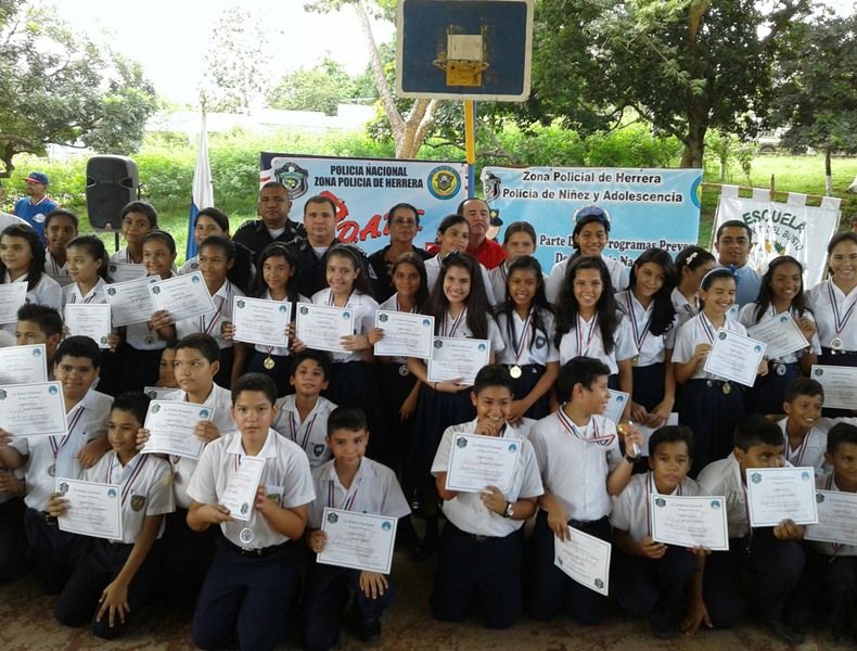 Un total de 139 niños de diferentes grados de la Escuela Primaria Juan T. del Busto, ubicada en el distrito de Chitré, recibieron certificados del programa de la Educación para la Resistencia al Uso y Abusos de Drogas y no a la violencia, facilitados por unidades de la Policía Nacional de servicio en Niñez y Adolescencia de la Zona de Herrera. En el acto estuvo el Comisionado Ismael Herrera Delgado Jefe de la Zona de Policía de Herrera, acompañado por un grupo de oficiales bajos su mando; al igual que profesores y funcionarios administrativos del Ministerio de Educación. El jefe policial de la provincia felicitó y exhortó a continuar por el sendero del bien alejándose de las drogas y de los malos vicios. Cabe señalar que en la provincia de Herrera este año ya han recibido certificado unos 168 estudiantes de dos planteles educativos de la provincia. La Policía Nacional continuará con los programas de Desarrollo Humano en beneficio de las nuevas generaciones; con la finalidad de prevenir que jóvenes se conviertan en víctimas de las drogas.