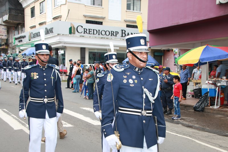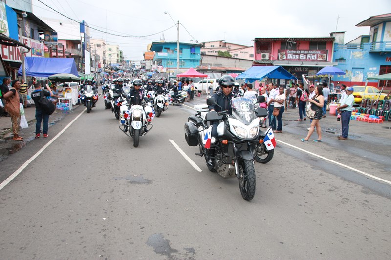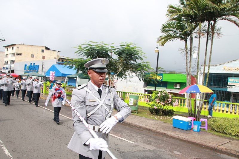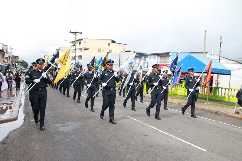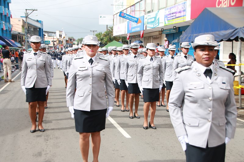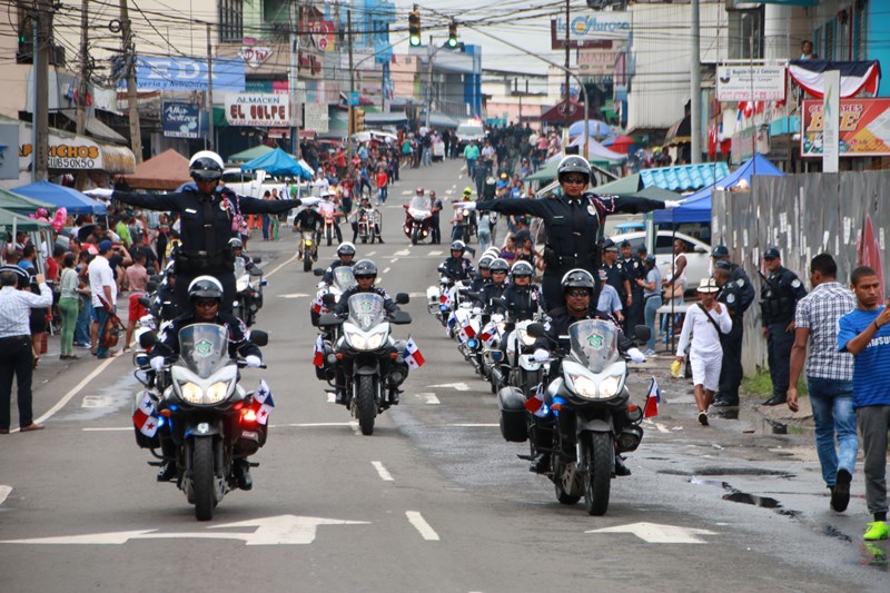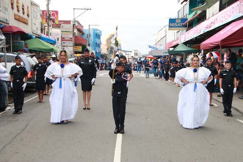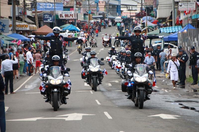 Miembros de la Policía Nacional desfilaron por las diferentes calles del distrito de La Chorrera, en conmemoración de los 195 años de independencia de Panamá de España. La delegación policial inició su presentación con unidades motorizadas de la Dirección Nacional de Operaciones de Tránsito seguidos por la Escolta de Banderas, mostrando por las diferentes calles y avenidas, su disciplina y patriotismo al llevar con orgullo el pabellón y el estandarte de la primera institución de seguridad. Durante el recorrido, se puedo observar a los banderines quienes representan a cada una de las zonas y direcciones policiales, el batallón femenino quienes destacaron la belleza y elegancia de las uniformadas. La banda de música de la Policía Nacional, deleitó al pueblo chorrerano con las diferentes notas musicales. Los estudiantes de la Escuela de Oficiales de Policía Nacional Doctor Justo Arosemena (ESOPOL), se destacaron realizando diferentes saludos y movimientos de orden cerrado. No podía faltar la delegación de los cadetes de la ESOPOL bailando y luciendo el traje típico de nuestro país. Los niños y niñas de los Pininos Nueva Generación de la Chorrera, estuvieron presentes en esta celebración, marchando y luciendo el uniforme policial, así también se presentaron el Grupo Juvenil Canino (GRUJACAN) de la Chorrera. En esta actividad estuvo presente el Director General de la Policía Nacional, Omar Ariel Pinzón Marín acompañado los miembros del Directorio y Personal No Juramentado de la institución. La ocasión fue propicia para que el Director General de la Policía Nacional, hiciera entrega de reconocimiento al señor, Miguel Ángel Rodríguez, por su apoyo en la celebración del 28 de noviembre. En esta celebración se pudo observar la gran cantidad de unidades a lo largo de la ruta del desfile, quienes velaron por la seguridad de los que asistieron a esta celebración.