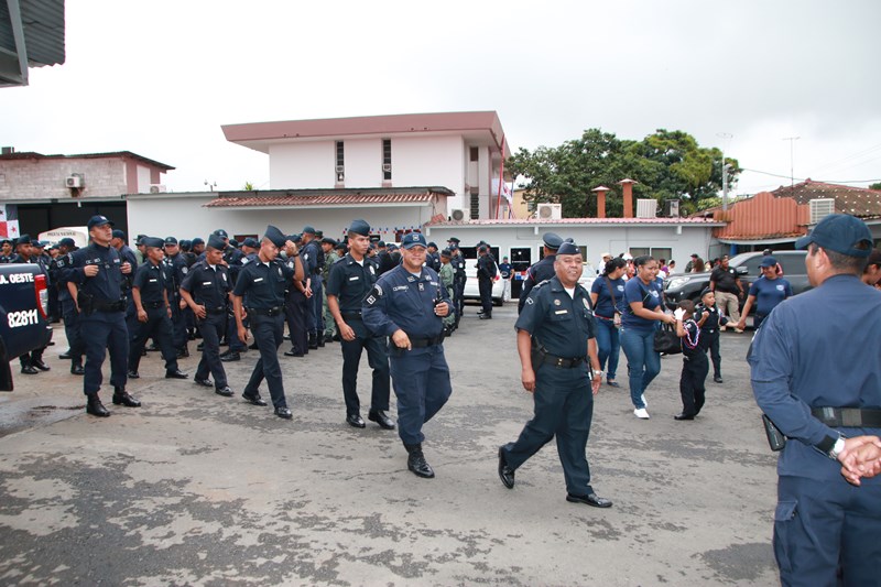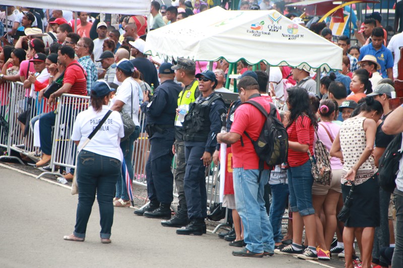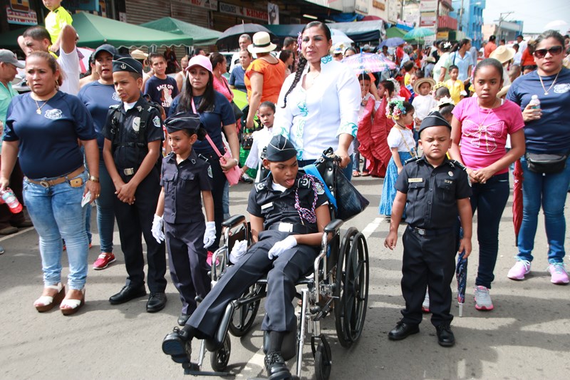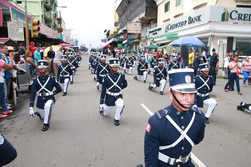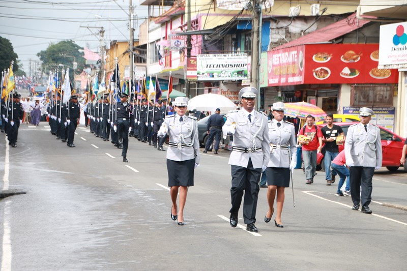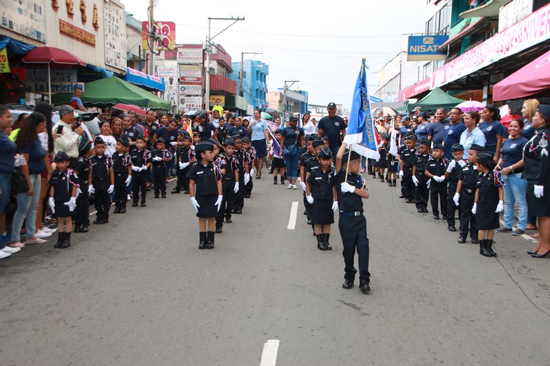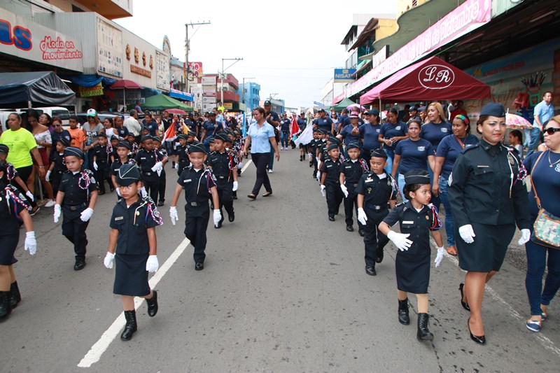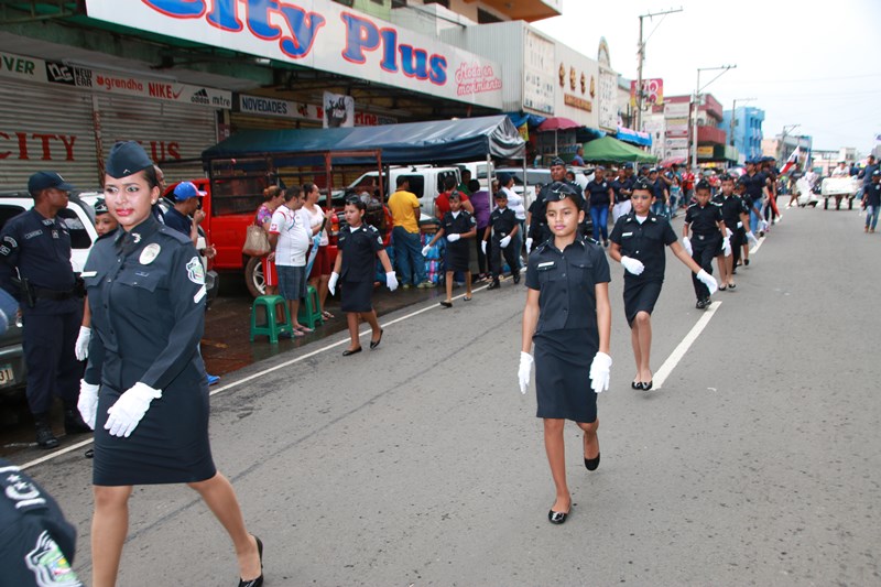 Miembros de la Policía Nacional desfilaron por las diferentes calles del distrito de La Chorrera, en conmemoración de los 195 años de independencia de Panamá de España. La delegación policial inició su presentación con unidades motorizadas de la Dirección Nacional de Operaciones de Tránsito seguidos por la Escolta de Banderas, mostrando por las diferentes calles y avenidas, su disciplina y patriotismo al llevar con orgullo el pabellón y el estandarte de la primera institución de seguridad. Durante el recorrido, se puedo observar a los banderines quienes representan a cada una de las zonas y direcciones policiales, el batallón femenino quienes destacaron la belleza y elegancia de las uniformadas. La banda de música de la Policía Nacional, deleitó al pueblo chorrerano con las diferentes notas musicales. Los estudiantes de la Escuela de Oficiales de Policía Nacional Doctor Justo Arosemena (ESOPOL), se destacaron realizando diferentes saludos y movimientos de orden cerrado. No podía faltar la delegación de los cadetes de la ESOPOL bailando y luciendo el traje típico de nuestro país. Los niños y niñas de los Pininos Nueva Generación de la Chorrera, estuvieron presentes en esta celebración, marchando y luciendo el uniforme policial, así también se presentaron el Grupo Juvenil Canino (GRUJACAN) de la Chorrera. En esta actividad estuvo presente el Director General de la Policía Nacional, Omar Ariel Pinzón Marín acompañado los miembros del Directorio y Personal No Juramentado de la institución. La ocasión fue propicia para que el Director General de la Policía Nacional, hiciera entrega de reconocimiento al señor, Miguel Ángel Rodríguez, por su apoyo en la celebración del 28 de noviembre. En esta celebración se pudo observar la gran cantidad de unidades a lo largo de la ruta del desfile, quienes velaron por la seguridad de los que asistieron a esta celebración.