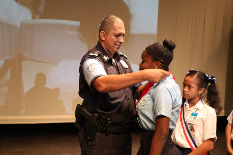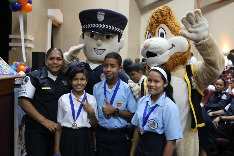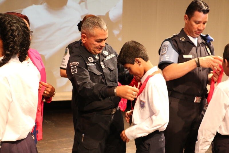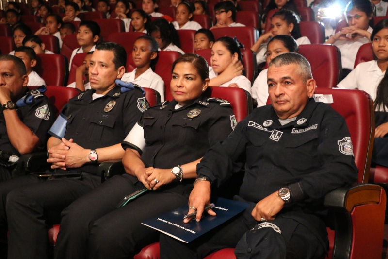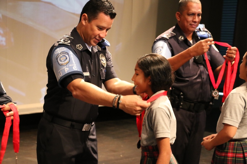 Con un acto de graduación donde participaron aproximadamente 500 niños, la Policía Nacional a través del Servicio de Niñez y Adolescencia clausuró los programas de “Educación en Resistencia al Abuso de las Drogas” (D.A.R.E) y “Educación y Entrenamiento en Resistencia a las Pandillas” (G.R.E.A.T), el cual se llevó a cabo en el Auditorio de la Universidad Tecnológica de Panamá. Los estudiantes representan a los diferentes planteles educativos del país quienes fueron capacitados para dar importancia a los valores y la prevención de la presión de grupo y el consumo de drogas. El comisionado y director Nacional de Operaciones, José Ríos en representación del Director General Omar Pinzón, felicitó a cada uno de los estudiantes, ya que la prevención es el escudo más eficaz de la seguridad pública. “Mediante estos programas, implementados por unidades de Policía de Niñez y Adolescencia, se afina la relación de policía-niñez, adolescentes y comunidad educativa”, resaltó Ríos. En este evento se realizaron dramatizaciones por parte de los estudiantes, así como también la presentación de una oratoria, para resaltar dichos programas. Cada uno de los estudiantes se les entregó una medalla alusiva a cada uno de los programas y un obsequio por parte de la Policía Nacional. También se premiaron a representantes de cada zona policial que capacitaron a los estudiantes, resaltando en el programa D.A.R.E Chiriquí, Arraiján y Herrera y en el programa G.R.E.A.T.: Zona Policial Metro Norte, Colón y Veraguas. En el evento estuvo presente la jefa del Servicio de Niñez y Adolescencia, subcomisionada Ayda Villarreal; el jefe de la Unidad Preventiva Comunitaria de Samaria, Raymundo Barroso.