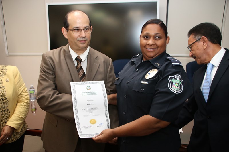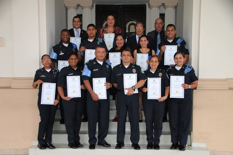 Fortaleciendo y ampliando sus conocimientos, 18 unidades de diversas direcciones de la Policía Nacional junto a otros miembros del Órgano Judicial, se acreditaron como Facilitadores Judiciales, en el VIII Diplomado. Este diplomado cuya duración fue de 519 horas fue organizado por la Organización de Estados Americanos (OEA), la Universidad de Panamá y el Instituto Superior de la Judicatura de Panamá y tiene como objetivo desarrollar conocimiento, competencia y habilidades en los operadores de la administración de justicia. Contó con la presencia del Embajador Representante de la OEA Jesús sierra Victoria, El Director del Instituto Superior de la Judicatura de Panamá, Ricauter Soler Mendizabal y Nimia Herrera de la Dirección de Educación Continua de la Vicerrectora de Extensión de la Universidad de Panamá. La ceremonia de graduación se llevó a cabo en el auditorio del Instituto Superior de la Judicatura de Panamá “Dr. Cesar Augusto Quintero Correa”. |