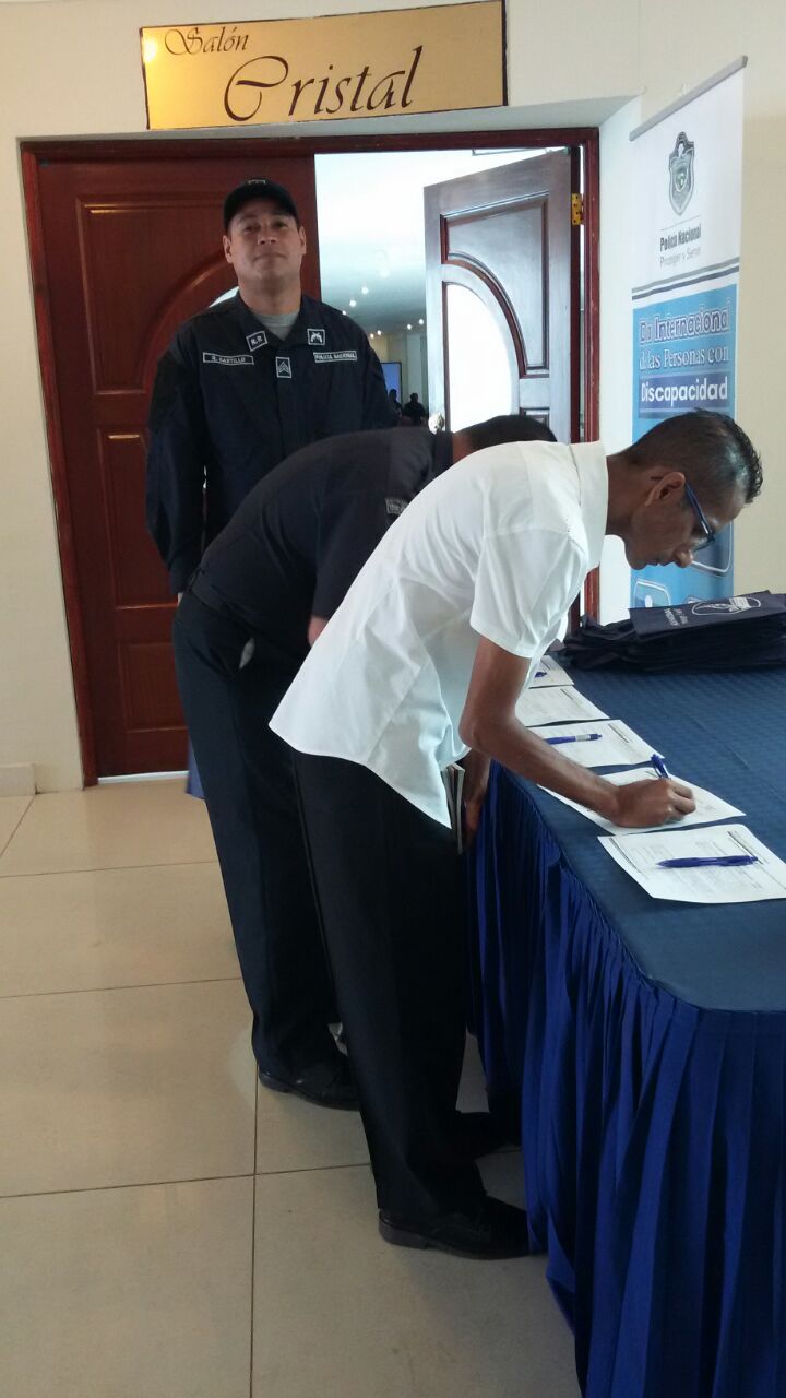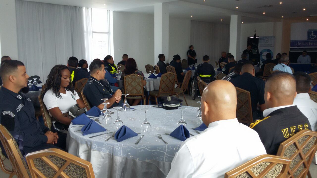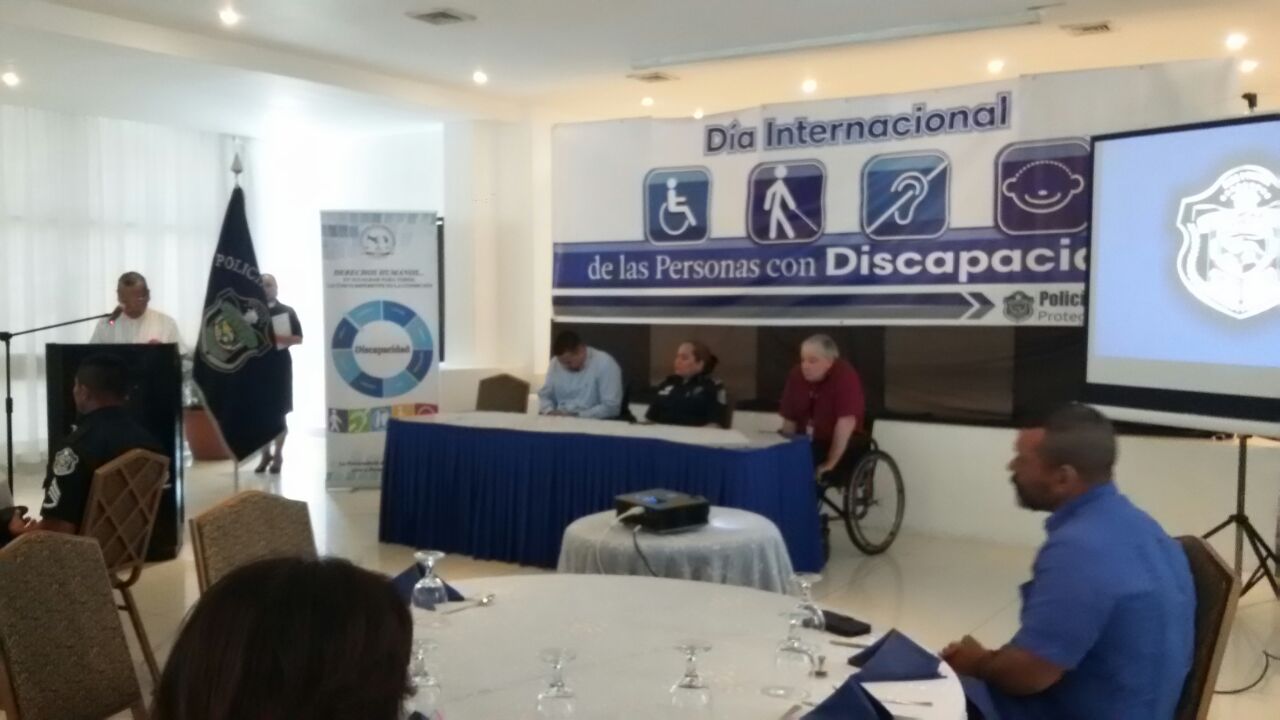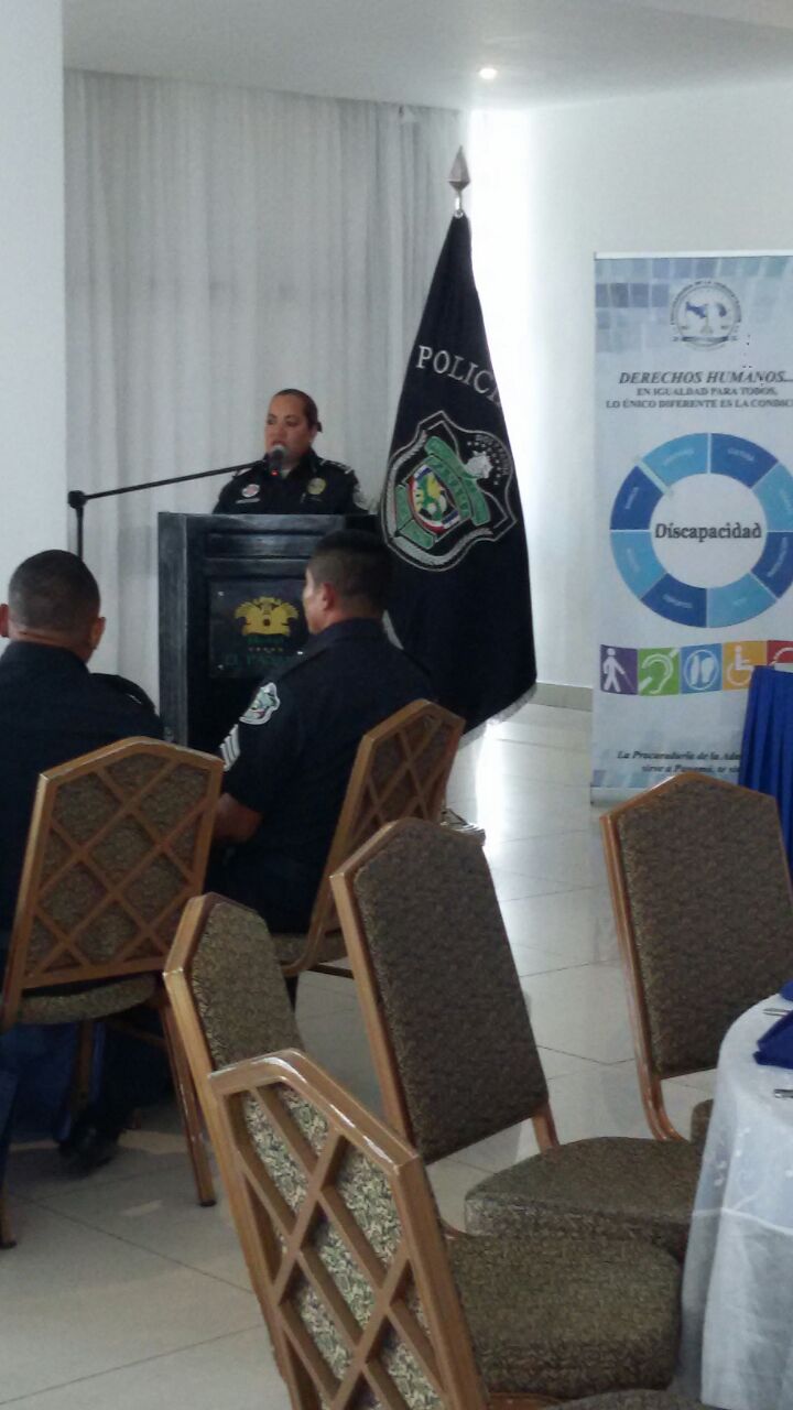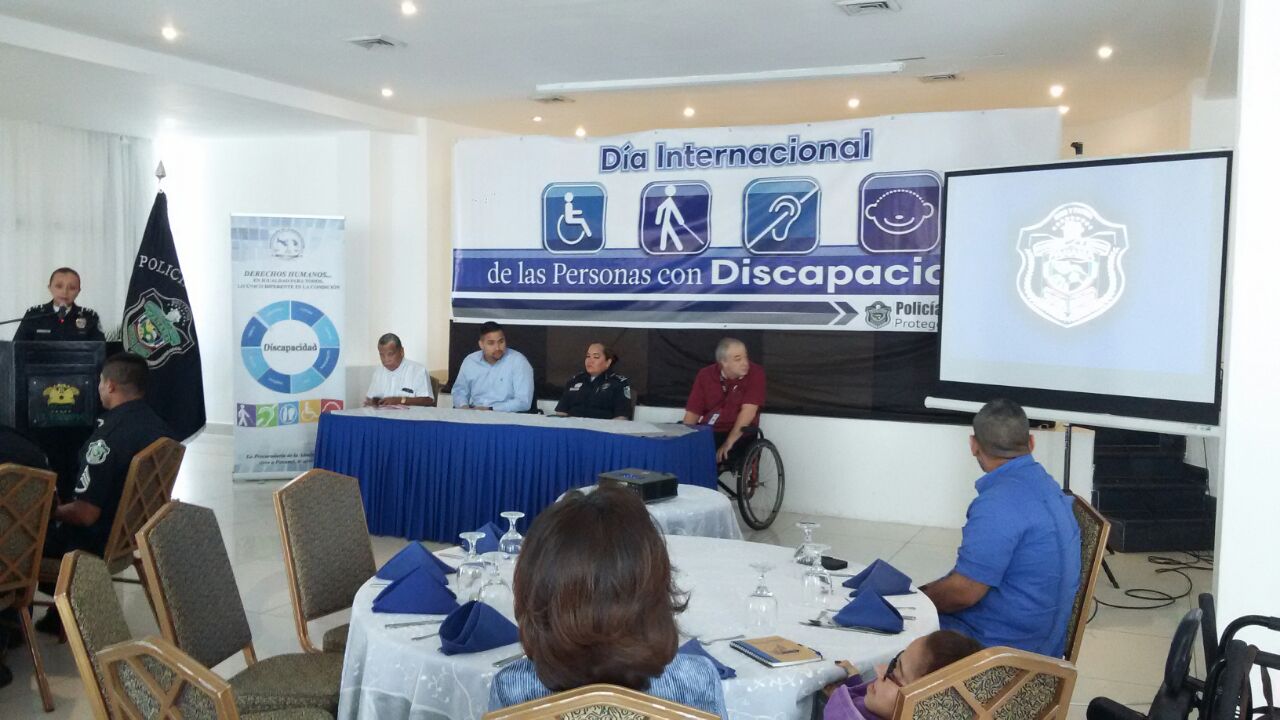 Con docencia e ilustrando sobre los derechos de aquellos ciudadanos que padecen de alguna discapacidad, la Policía Nacional a través de la Dirección de Bienestar Policial y Familiar realizaron un conversatorio donde participaron los diversos estamentos de seguridad e instituciones. Fue el Departamento de Genero e Igualdad de oportunidades quienes organizaron el evento que buscan brindar asistencia y ayuda aquellas personas que tengan deficiencias físicas, mentales, intelectuales, al interactuar con diversas barreras que puedan impedir su participación plena y efectiva en la sociedad, en igualdad de condiciones con los demás. La Sub Comisionada Elida Ortega, Directora Nacional de Bienestar Policial y Familiar, señaló que con este tipo de actividades se busca educar a las unidades de los diversos estamentos de seguridad, sobre cómo brindar protección a los discapacitados y la importancia de estos dentro de nuestra sociedad. Entre los diferentes expositores estaban: Licenciado Virgilo Carrión, Lic. Demetrio Chen, quienes expusieron sobre los temas derechos de los discapacitados, los deberes y derechos de los colaboradores hacia los discapacitados entre otros. El encuentro además contó con la presencia de Lic. Jorge Villalba, Red Nacional de Discapacidad, Lic. José Townshesend, Director Nacional de promociones y participación Ciudadana de la Secretaria de Nacional de Discapacidad.