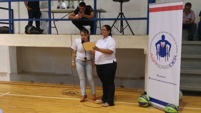 Unidades de la Policía Nacional participaron en el 1er. Torneo Nacional de Baloncesto sobre sillas de ruedas ASPADESTER 2016, con la finalidad de integrar a estos jóvenes con capacidades especiales en el deporte y a la sociedad. El Departamento de Comunicación y Proyectos de la 4ta. Zona Policial de Chiriquí, brindó la colaboración profesional para fungir como maestro de ceremonia de la actividad. Este Torneo se realizó en el Gimnasio Escolar, ubicado en la ciudad de David, donde participaron los equipos de las provincias de Panamá, Panamá Oeste, Coclé y Chiriquí Las palabras de bienvenidas las dio el Señor Ricardo Martínez, Administrador del Gimnasio, mientras que la Juramentación de los atletas participantes la realizó el jugador Kenny Pitty, del equipo de Chiriquí. El Señor Luis Espinoza, jugador del equipo de Panamá y organizador del Torneo, agradeció a la Policía Nacional por apoyar este evento y el interés de ayudar a las personas con discapacidad. Por otro lado el saque de honor lo efectuó la Licenciada Karla de Hernández, quien era una de las patrocinadoras de este evento.